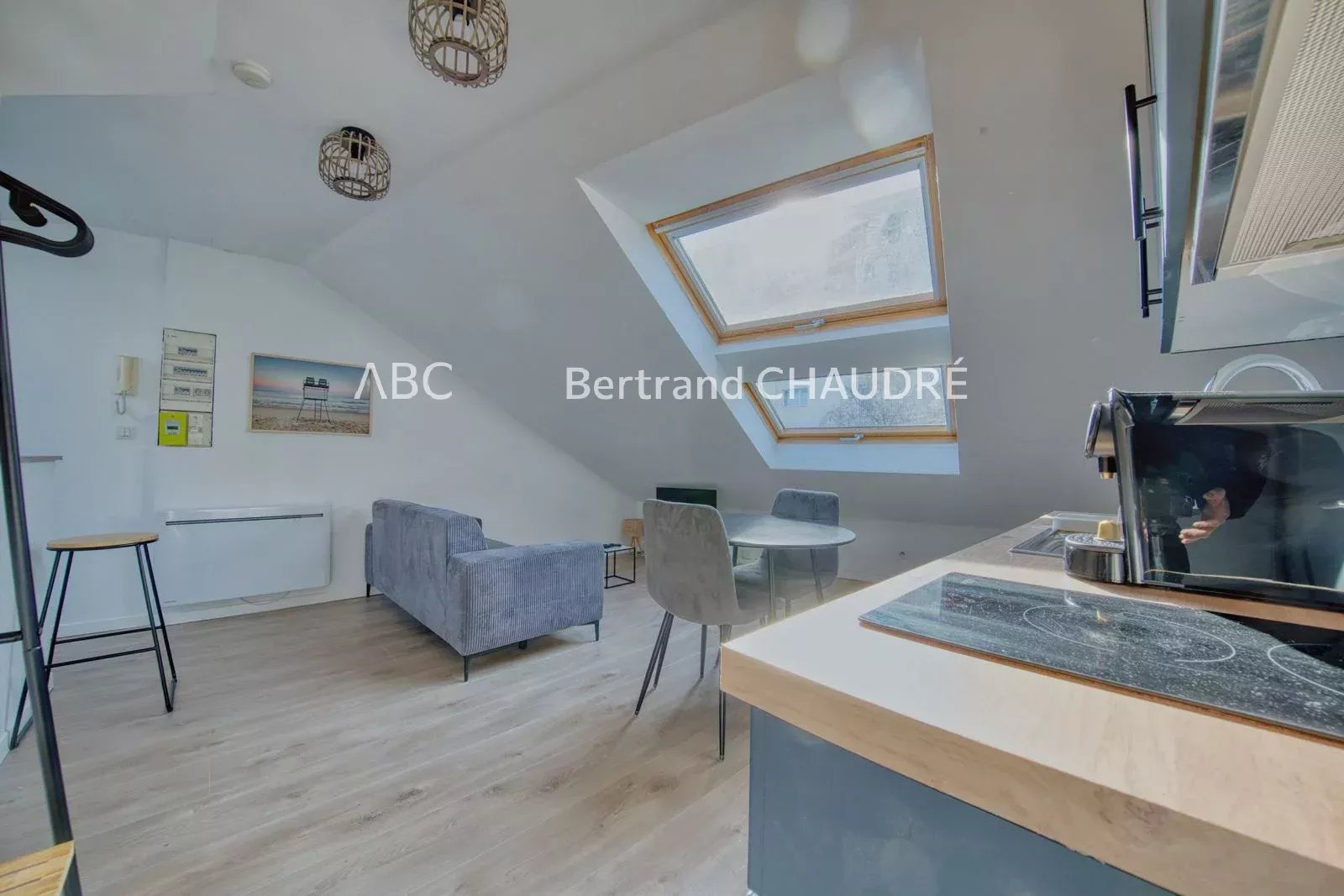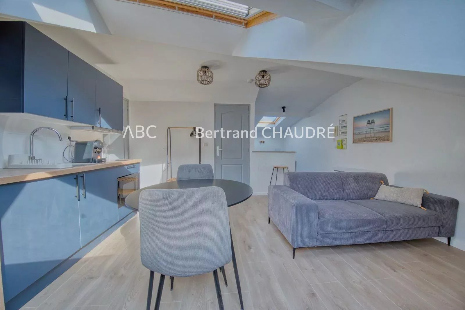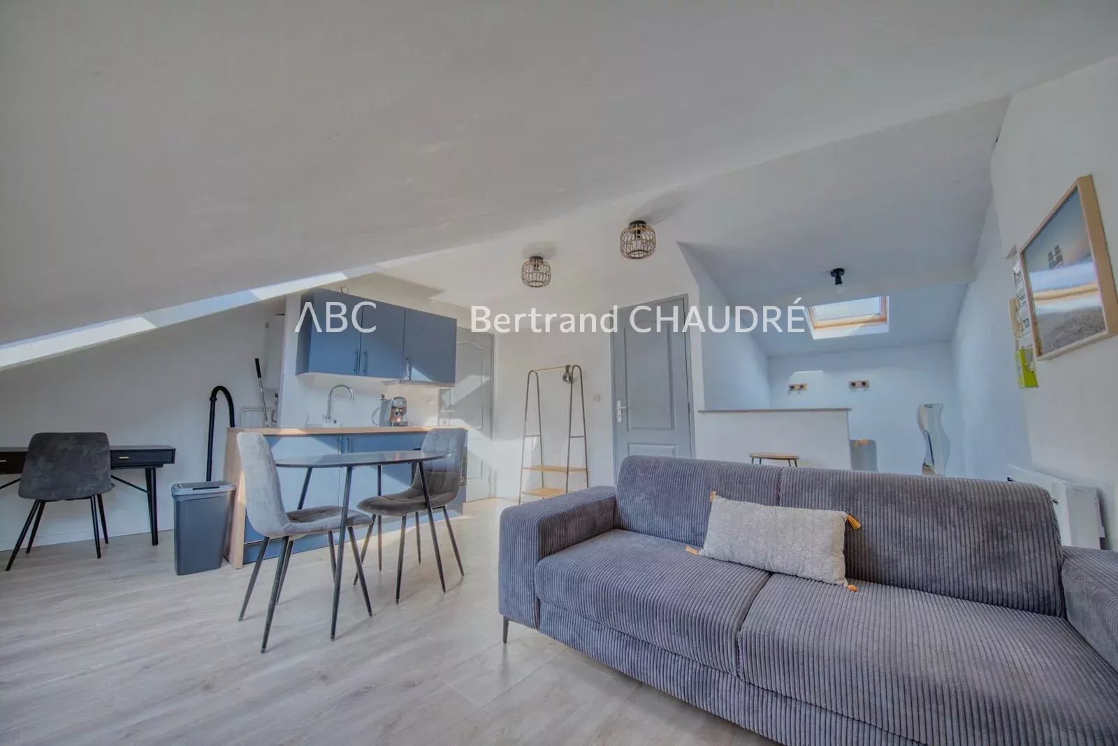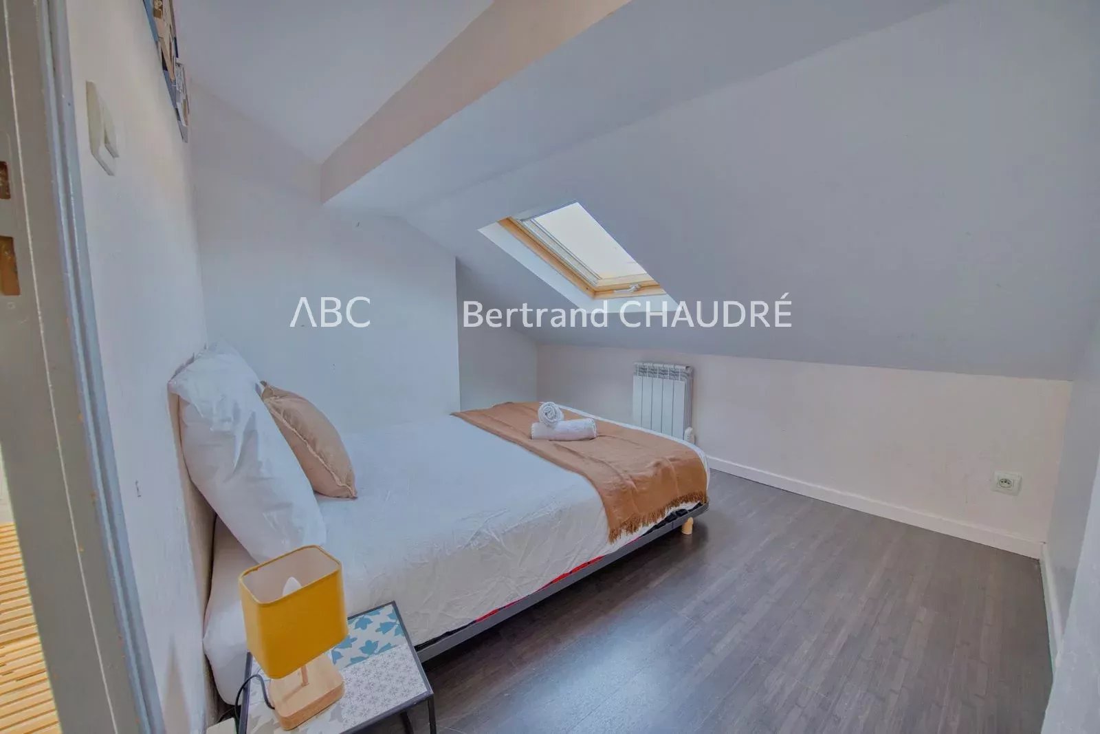 Apparrtement mansardé de 38 m² au sol, entrée par le 2ème étage et au 3ème étage, pièce de vie avec cuisine ouverte, petite chambre séparée (7,22m² au sol), SDD avec WC. Idéal investissement locatif, vendu meublé car loué aujourd'hui en courte durée.