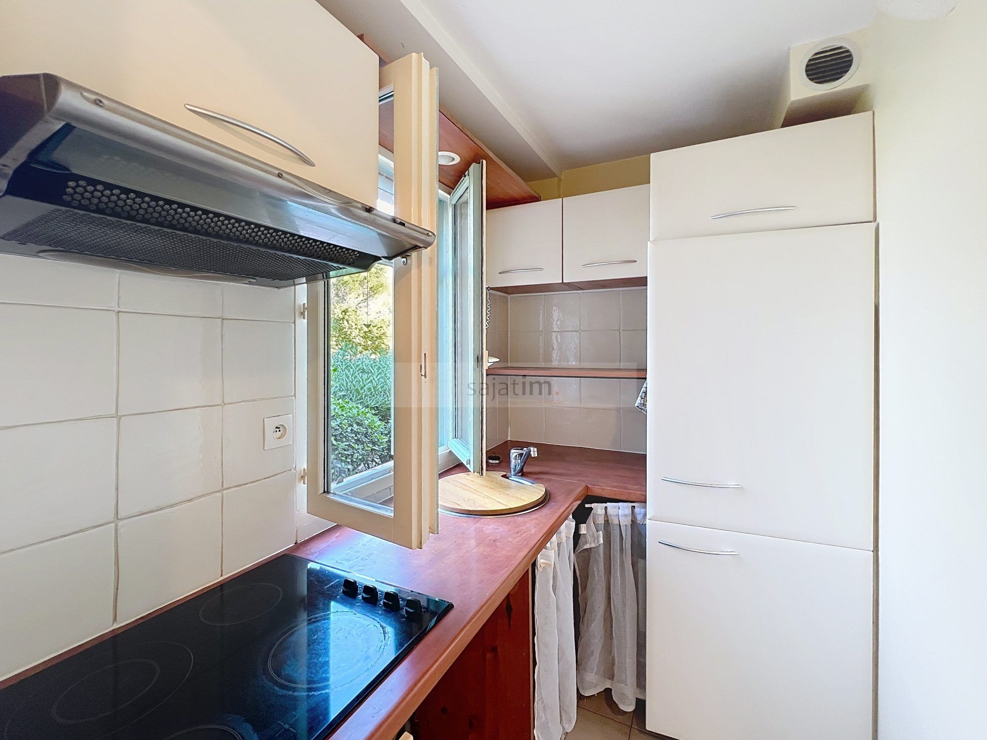 au rez-de-chaussée, d'une entrée, d'une kitchenette indépendante, d'une salle d'eau avec wc, et d'un séjour ouvrant sur une terrasse et un charmant jardinet privatif, parfait pour vos repas d'été ;