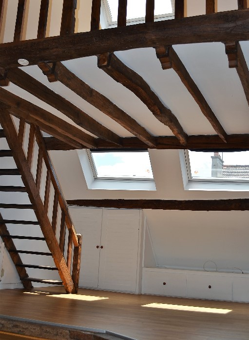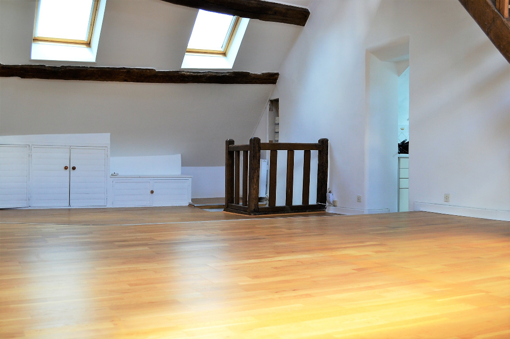 RUE DES COCHES - DANS UNE JOLIE COPROPRIÉTÉ AU 4EME ÉTAGE SANS ASCENSEUR APPARTEMENT 3 PIÈCES DE 53 M² ENVIRON / 92 M² ENVIRON SURFACE AU SOL VOUS OFFRANT : ENTRÉE PRIVATIVE, SÉJOUR AVEC POUTRES ET PARQUET, 2 CHAMBRES DONT 1 EN MEZZANINE, CUISINE INDÉPENDANTE AMÉNAGÉE, 1 SDB, WC INDÉPENDANT. ATYPIQUE ET BEAUX VOLUMES ! COUP DE COEUR ASSURE !