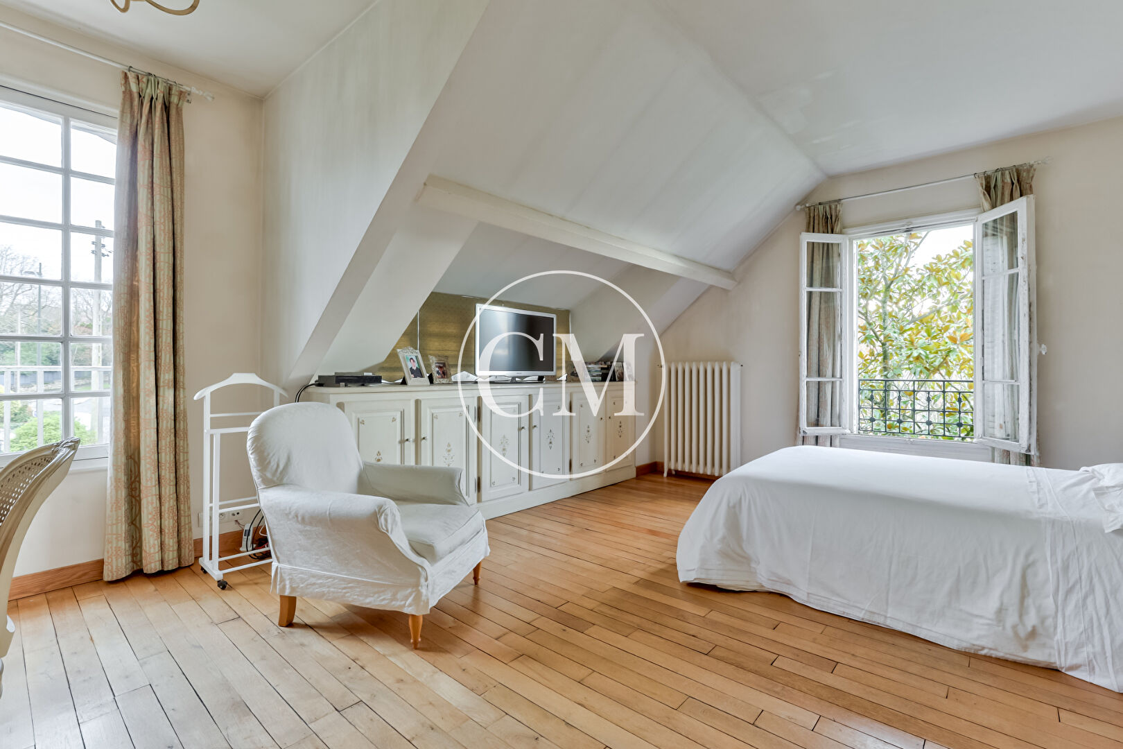 MAISON LE CHESNAY PLATEAU SAINT ANTOINE Le Cabinet Mansart vous présente : En plein coeur du Plateau Saint-Antoine au Chesnay, maison en meulière très lumineuse des années 1920 Maison non mitoyenne avec jardin sans vis à vis Entrée , séjour traversant lumineux, avec cheminée et parquet versaillais. La salle à manger attenante et la cuisine ouvrant sur la terrasse et le jardin. A ce niveau : WC séparés et salle de bains. A l'étage, trois chambres ainsi qu'une salle de bains/douche. Les combles offrent un espace de rangement supplémentaire. En rez-de-jardin, une quatrième chambre avec dressing et salle d'eau/WC avec un accès indépendant, idéal pour une profession libérale. Au sous-sol buanderie, cellier et une cave à vin. Garage double fermé et un n studio indépendant avec WC dans le pavillon annexe