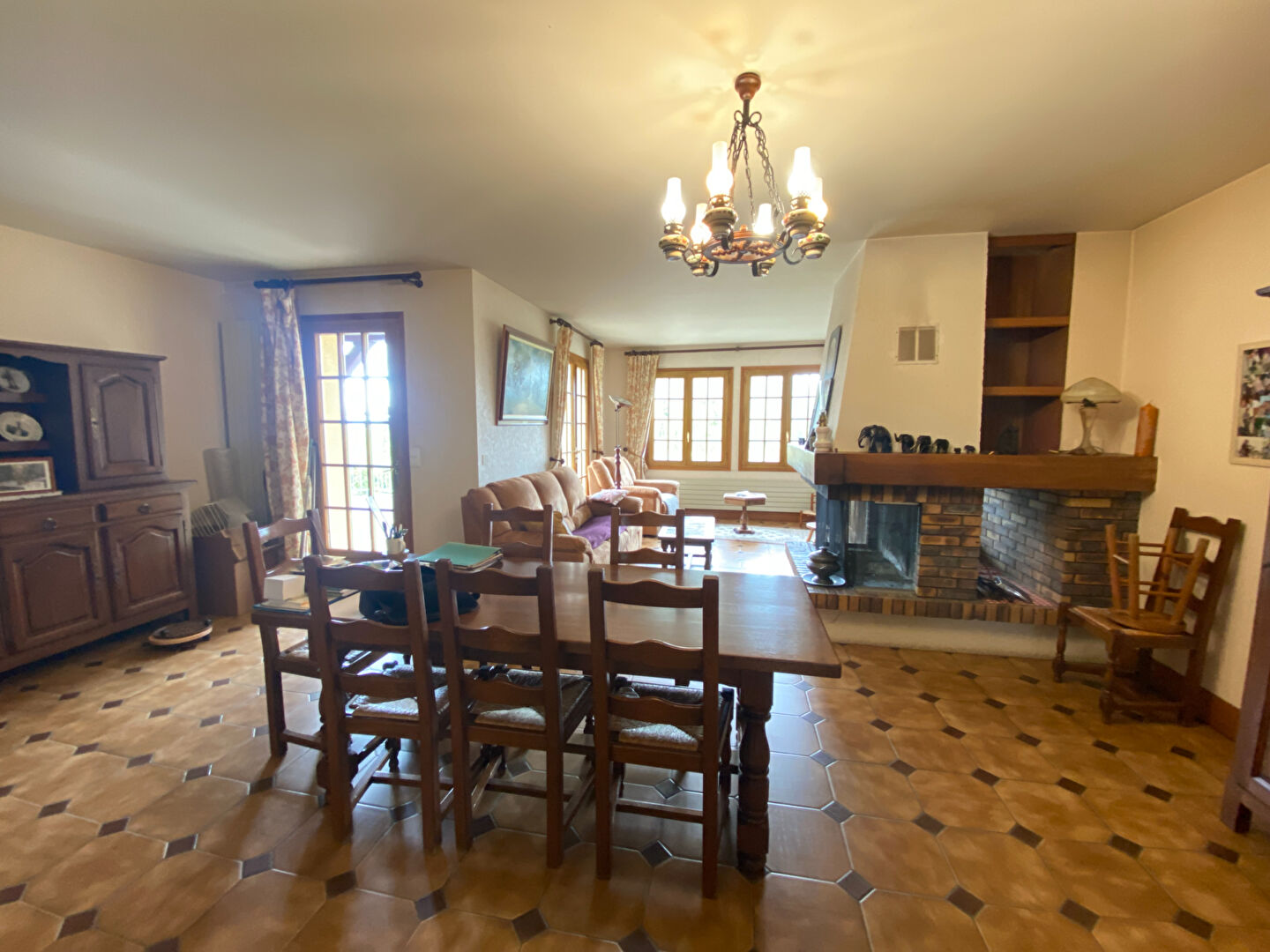 LA CHAPELLE LA REINE, village proche de FONTAINEBLEAU et de l'A6, pavillon des années 80 élevé sur sous-sol complet, composé de : une entrée avec placards, cuisine aménagée et équipée semi ouverte, séjour double ouvrant sur une terrasse ainsi que la piscine, suite parentale avec salle de bains, bureau, lingerie et WC. A l'étage : mezzanine, 3 chambres dont une avec salle d'eau, salle de billard, salle de bains et WC. En dépendances : préau garage attenant à la maison, second garage deux voitures avec grenier au-dessus, chalet de jardin, cuisine d'été, piscine. Magnifique jardin très fleuri et verger. Honoraires d'agence charge vendeurs