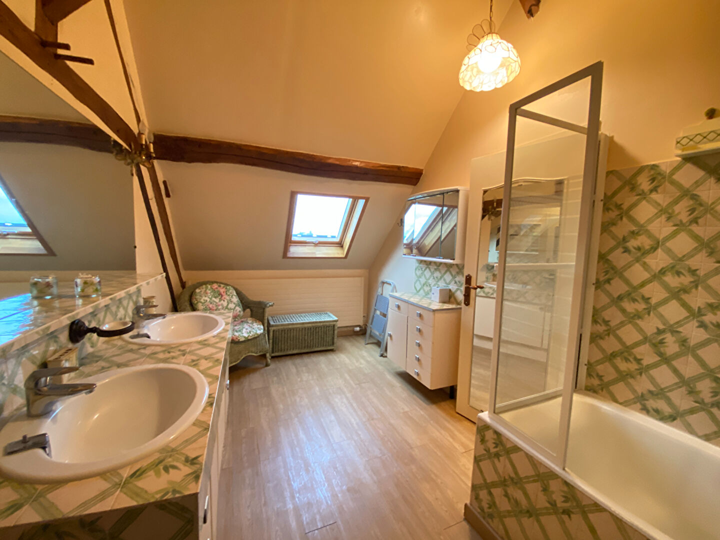 A VINNEUF dans l'Yonne, joli village avec commerces et école primaire, à 35 km de FONTAINEBLEAU et à 100 km de PARIS, ancienne grange transformée en habitation et agrandie par la suite. La maison offre dans la partie ancienne : une entrée, deux chambres, une salle de bains avec WC, puis dans la partie plus récente : une cuisine aménagée et équipée, un superbe séjour cathédrale de 65m2 avec cheminée et mezzanine donnant accès à la suite parentale avec salle de bains et WC. La maison pourra être vendue avec les meubles. Calme La cour pavée fermée par la maison en L, donne non seulement du charme à la maison, mais aussi permet de cacher le jardin arboré et fleuri d'environ 1000m2 derrière la maison. Côté jardin, un second accès voiture a été crée pour accéder au garage double. Honoraires d'agence charge vendeurs Logement à consommation énergétique excessive : classe F