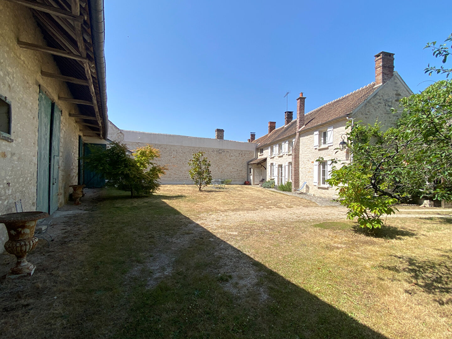 VILLIERS SOUS GREZ, à 4km de la gare pour PARIS (1h ) , en lisière de forêt, propriété sur 1230m2 de terrain, composée de deux bâtiments en pierre dont les toitures et façades ont été rénovées. La maison principale très lumineuse se situe dans un des deux bâtiments et offre : une entrée, une salle d'eau avec WC, une grande cuisine aménagée, un superbe séjour traversant avec poêle Gaudin de 50m2, une chambre. A l'étage , 4 chambres dont une avec salle d'eau et l'autre avec lavabo, une salle de bains, un WC et nombreux rangements sur le palier. Le second bâtiment est composé de 3 granges d'environ 135m2 au sol sur 8m de hauteur (possibilité de créer 3 niveaux). Un petit bâtiment a été aménagé et sert de local à vélos. Une grange sert actuellement de garage. Grand jardin derrière les granges avec vue sur la forêt. Une grande cour jardin sépare les deux bâtiments. Chauffage au fuel, plus poêle à bois et électrique à l'étage. IDEALE POUR INVESTISSEURS OU GRANDE FAMILLE !! Honoraires charge vendeur.
