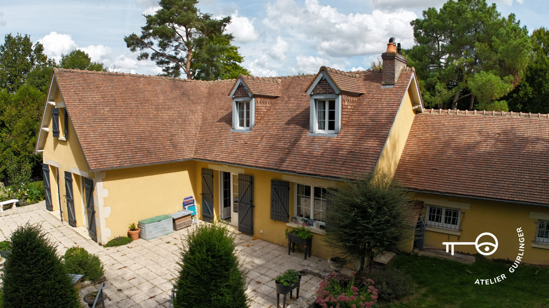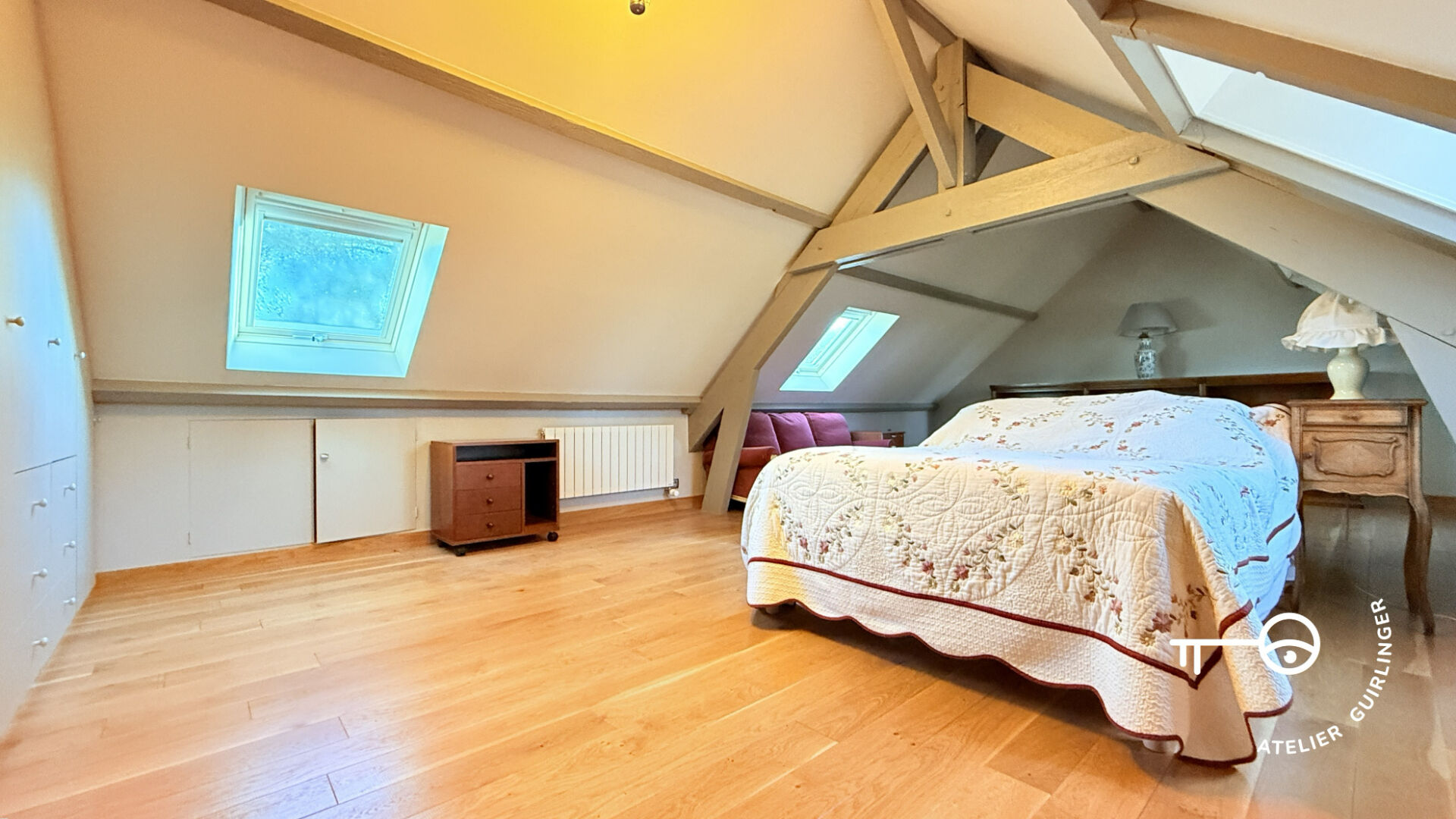 Aux portes du charmant village de Perche-en-Nocé, cette maison traditionnelle se dresse dans un écrin de verdure, entourée d'arbres matures, de fleurs et d'un grand terrain de près de 5000 m² où le temps semble ralentir. Ici, chaque saison a son charme, chaque lumière son reflet sur les pierres blondes et les tuiles patinées. La maison offre deux espaces de vie, distincts mais harmonieux, permettant d'accueillir famille, amis ou projet d'indépendance. Dans la partie principale, l'entrée ouvre sur une vaste pièce de vie d'environ 45 m². Les poutres apparentes, la cheminée de pierre et les larges ouvertures créent une atmosphère chaleureuse, propice aux veillées d'hiver comme aux petits-déjeuners ensoleillés. La cuisine, aménagée et équipée, se prête à la convivialité du quotidien. Deux chambres de plain-pied, une salle d'eau et des toilettes séparés complètent ce niveau. Un bureau lumineux mène à l'étage, où s'étendent une belle pièce palière, une grande chambre, un dortoir et une salle de bains récente avec toilettes. La seconde partie, plus intime, propose un salon, une cuisine, une salle d'eau et une buanderie, prolongés par une mezzanine et deux greniers. Un espace à imaginer selon vos envies ? atelier, logement d'amis, ou cocon indépendant. Le jardin, délicatement arboré de multiples essences, invite à la rêverie. On y trouve une serre, un chalet de jardin, une dépendance et un puits qui murmure encore les histoires du lieu. Cette propriété est une maison de famille, pensée pour les moments partagés et les instants paisibles. Une adresse rare, où l'authenticité du bâti rencontre la poésie du Perche. La présente annonce a été rédigée sous la responsabilité de Eric GUIRLINGER, GERANT de la SARL PAULERIMMO (Agence Immobilière ATELIER GUIRLINGER), Capital social de 3 000 euros - immatriculée au RCS de BLOIS B 901 939 801, titulaire de la carte professionnelle N°CPI41012021000000006 (CCI du Loir-et-Cher), adhérant des Assurances GALIAN-SMABTP 89 Rue La Boétie - 75008 PARIS N° client : 170056 T en Responsabilité Civile et Garantie des Fonds déposés, Adhérent de la Fédération Nationale des Agents Immobiliers (FNAIM). Société code NAF 6831Z - Agence immobilière, engageant sa responsabilité au travers de la rédaction des avant-contrats (compromis ou promesses) sur mesure, dans des délais rapides et habilitée au maniement de fonds dans le cadre de l'article 55 de la Loi Hoguet. Gérant assujetti aux conditions de détention de diplômes ou d'expérience majeure dans le domaine immobilier et aux obligations de formation pour le renouvellement de sa carte professionnelle.