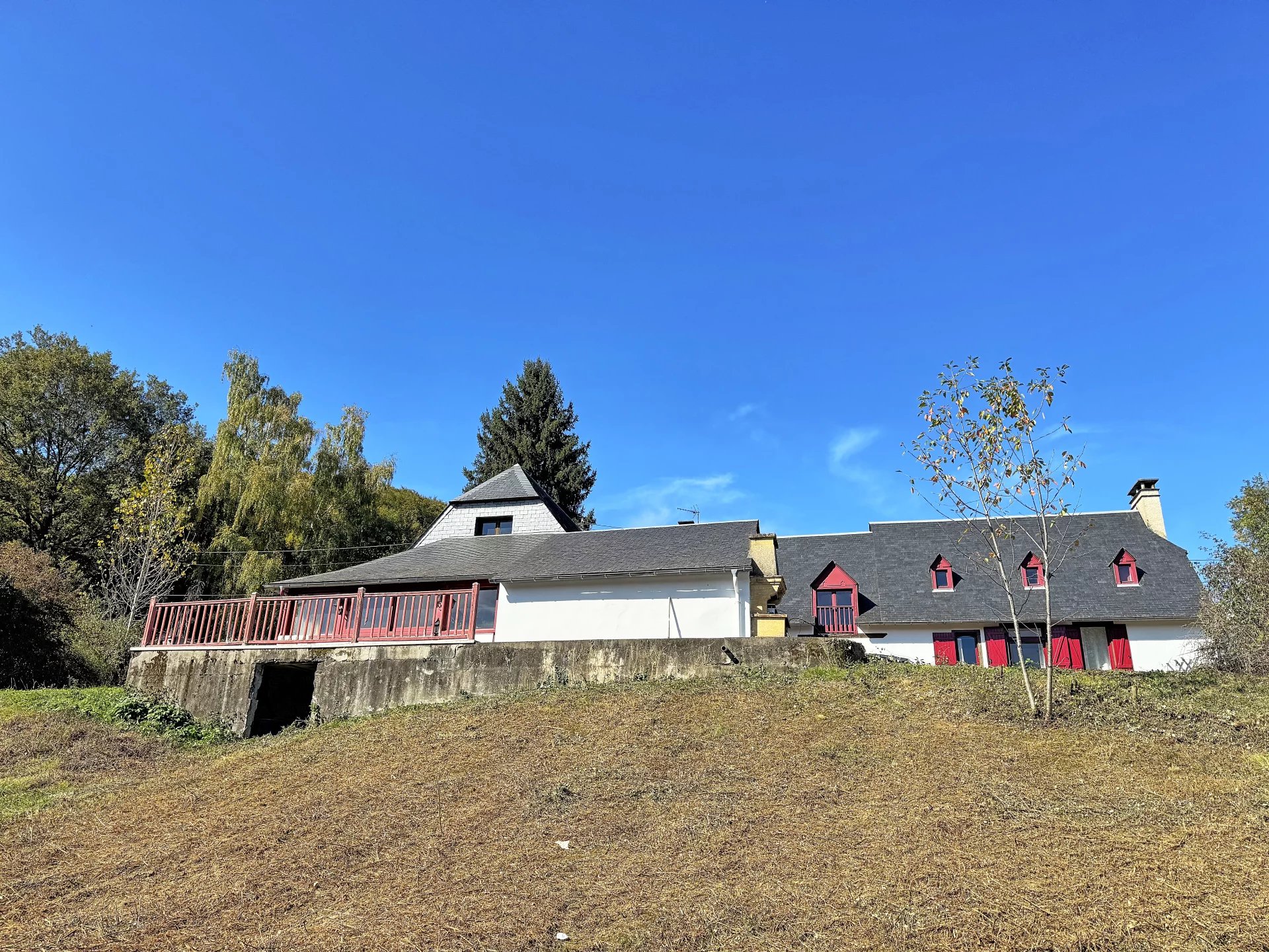 A 5 mn de Bagnères de Bigorre, au milieu d'un environnement exceptionnel avec une vue panoramique, ancienne ferme totalisant 360m² et de 264m² habitables sur un vaste terrain de 7600m².