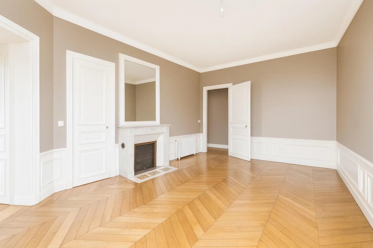 Belle hauteur sous plafond et charme ancien préservé: parquet, moulures et cheminées.