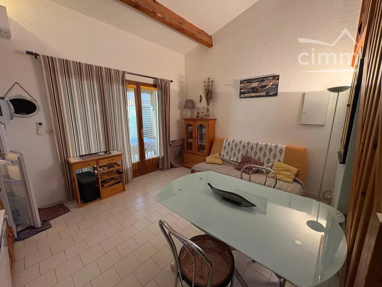 Charmant pavillon climatisé situé à seulement 200 m de la plage, au sein d’une résidence sécurisée avec place de parking privative.