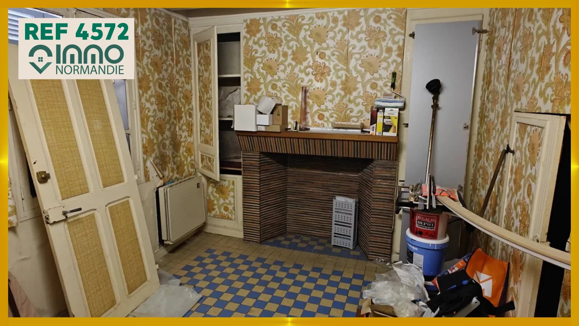A rénover RDC : cuisine, cellier, couloir/buanderie, séjour avec cheminée. A l'étage : palier, chambre. Au 2nd : chambre. Terrain environs 200m². Simple vitrage, chauffage électrique, tout à l'égout.
