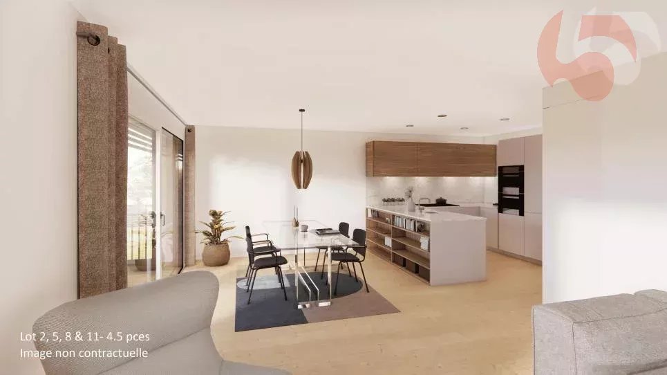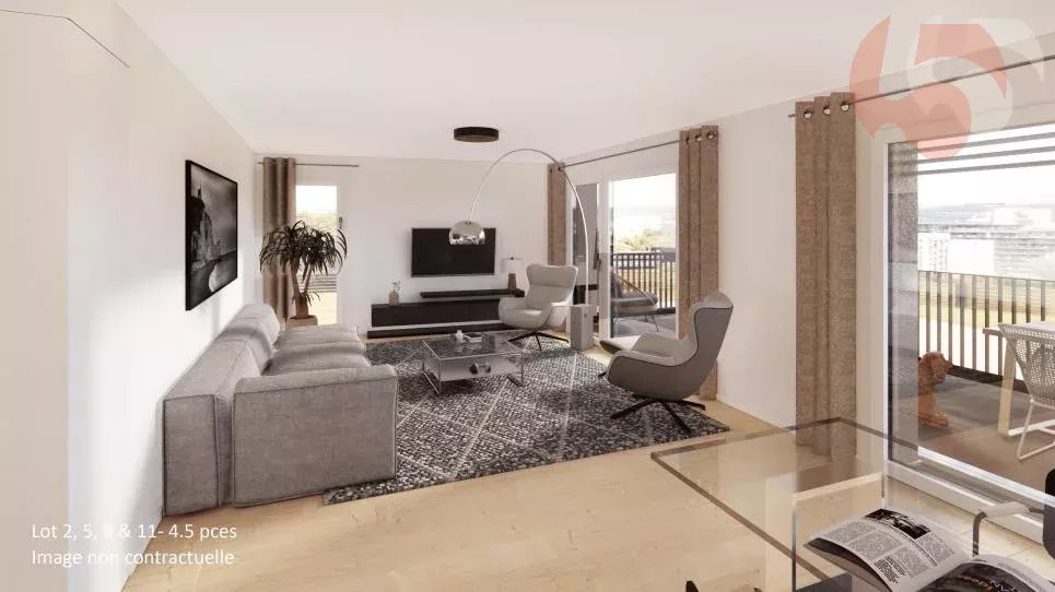 Au 1er étage (lot 5), ce logement neuf de 4.5 pièces offre 115.8 m² de surface et une superbe terrasse de 21.9 m2. La distribution intérieure propose un espace de jour de plus de 46 m2 et de 3 belles chambres dont 1 suite parentale et sa salle de douche.