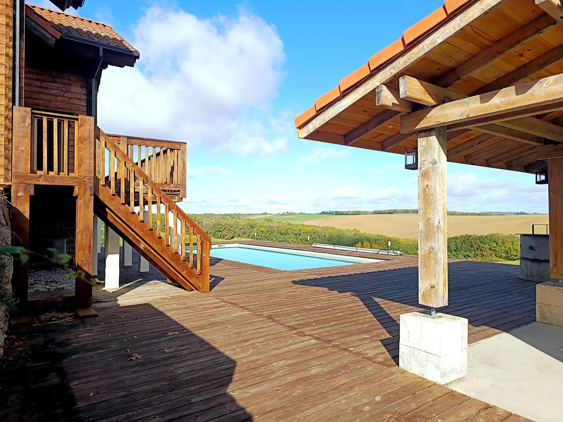 A quelques minutes de Rabastens et aux portes de la métropole toulousaine, cette maison en bois finlandais offre un cadre de vie rare : la sérénité de la campagne alliée au confort du quotidien. À seulement 35 minutes de Toulouse (30 minutes du péage de l’Union) et 10 minutes des grands axes, elle incarne un parfait équilibre entre nature, accessibilité et douceur de vivre. Édifiée en double madrier de bois massif par un constructeur finlandais haut de gamme, elle conjugue qualité artisanale et performance énergétique (classe AA). Tout respire la solidité, la chaleur et la lumière. 🏡Disposition de la maison Rez-de-chaussée : - Entrée avec espace de rangement - Séjour cathédrale de 65 m², baigné de lumière, ouvert sur la terrasse et la piscine - Cuisine équipée conviviale et fonctionnelle donnant sur la terrasse - Chambre avec accès extérieur et vue exceptionnelle - Bureau (ou chambre d’appoint) - Salle d’eau - WC indépendant - Cellier/buanderie avec chauffe-eau thermodynamique Étage : - Deux chambres lumineuses - Salle de bains avec baignoire Grande pièce palière mezzanine de 27 m² donnant sur le salon cathédrale 🌿 Extérieurs et terrain - Terrain de 3 867 m², partiellement constructible (réseaux eau/électricité/évacuation déjà prévus) - Grande piscine avec terrasse couverte et brasero intégré, parfaite pour les soirées d’été - Cave et espaces de rangement sous la maison - Deux cuves de récupération d’eau de pluie - Dalle prête pour la construction d’un futur garage Une maison à vivre autant qu’à contempler — un refuge élégant, performant et ouvert sur la nature, où chaque lever de soleil éclaire un peu plus la promesse d’une vie paisible. 🍾 440 000€ FAI 📞Contactez Joséphine Aguerre au 0646220832