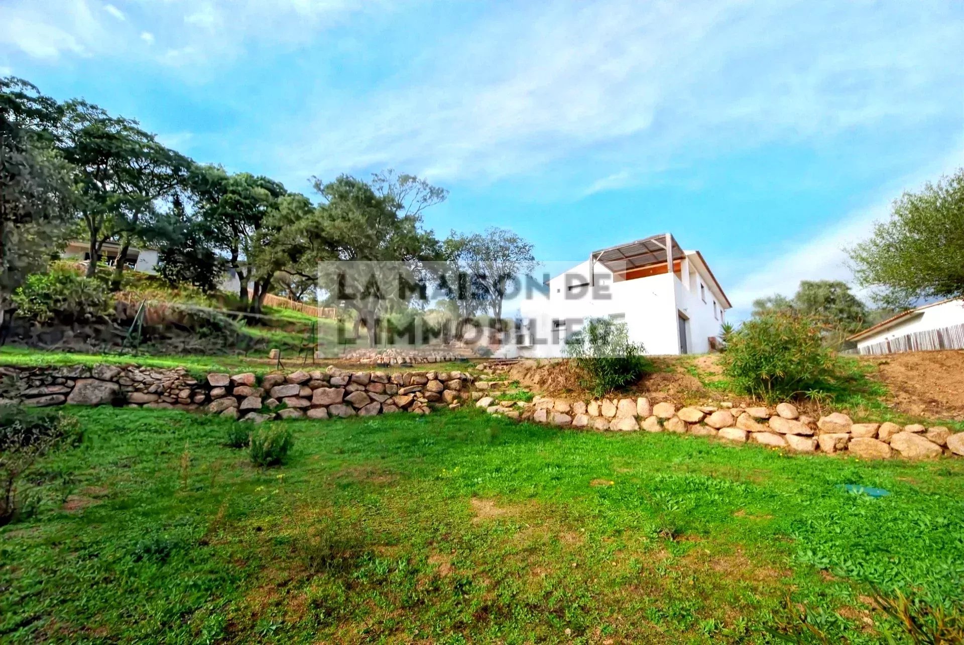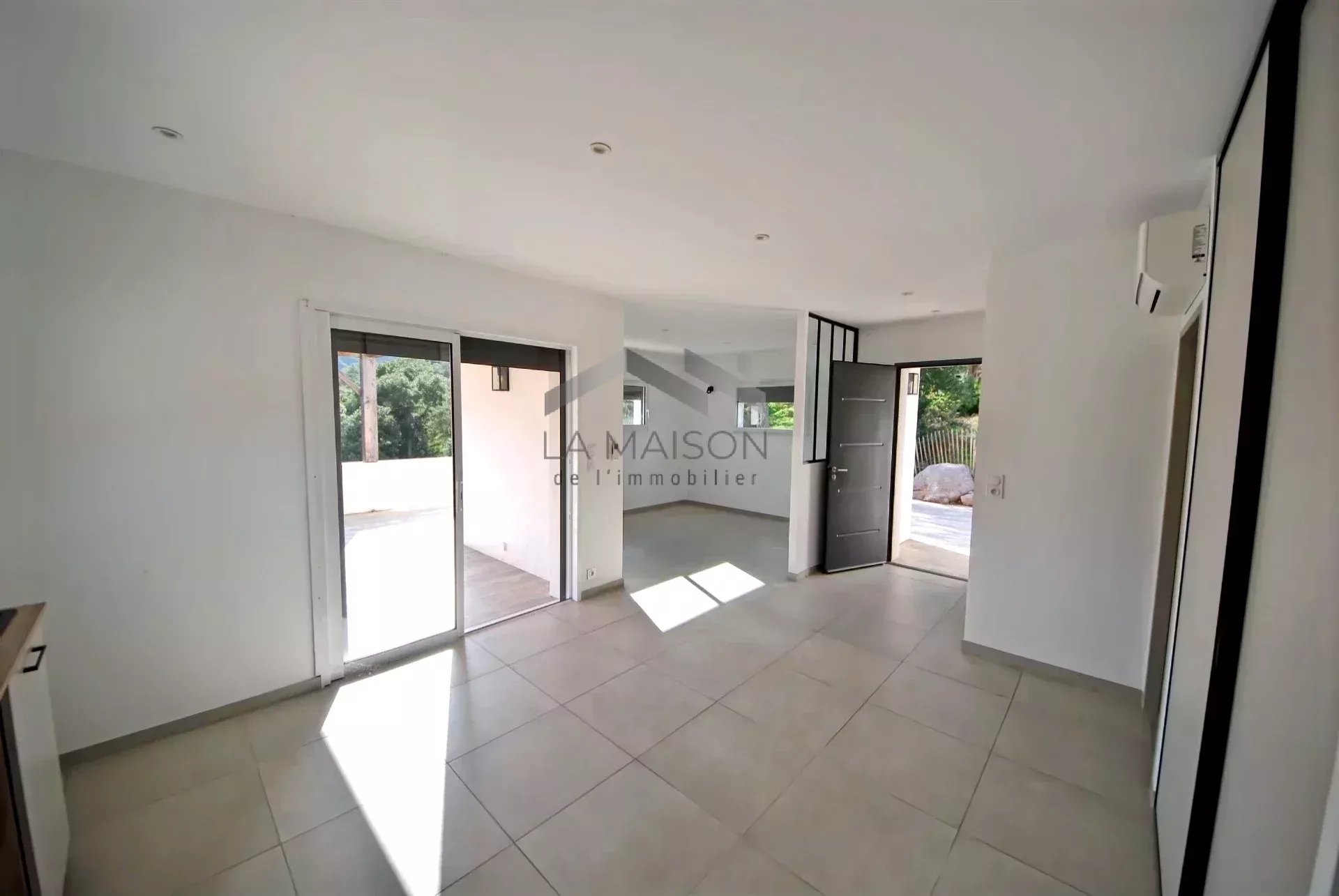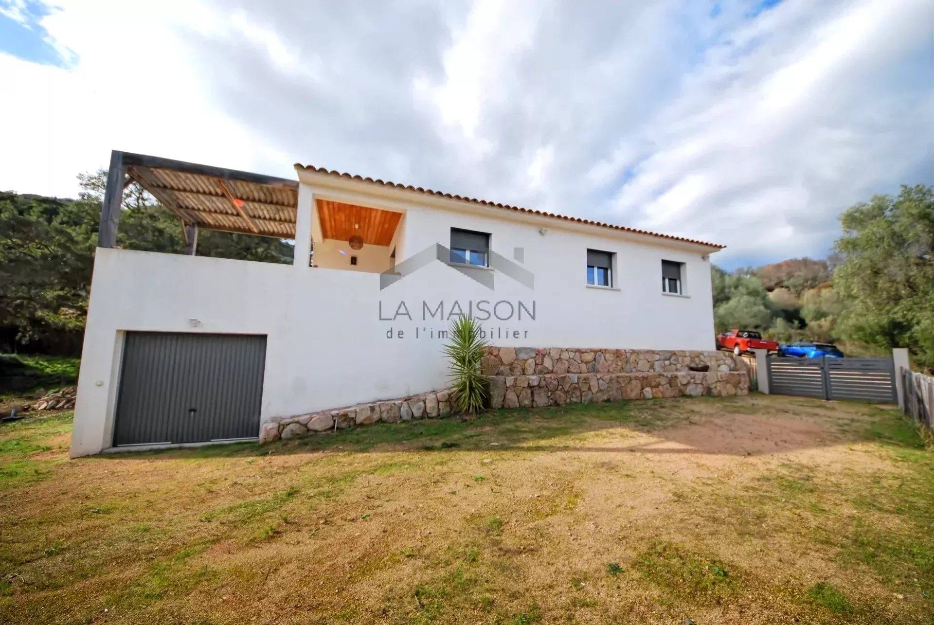 Dans un hameau de la commune de Sotta, venez découvrir cette villa implantée à flanc de colline et bénéficiant d'une vue et d'un environnement naturel d'exception. Cette habitation d'environ 82 m² dispose d'une entrée avec cabinet de toilettes indépendant et placard, d'un séjour attenant à une cuisine ouverte sur une terrasse couverte orientée au sud, d'un couloir desservant une salle d'eau et 3 chambres avec placard, dont une avec salle d'eau. Chaque pièce est équipée d'une climatisation réversible à commande individuelle. Au rez-de-jardin, un vaste garage d'environ 34 m² et un vide sanitaire accessible permettraient un aménagement aisé en studio ou T1. Une deuxième terrasse avec raccordements permet l'installation d'un jacuzzi ou d'une mini piscine. Le terrain est clos avec deux portails, l'un desservant l'entrée principale en partie haute et l'autre le garage.