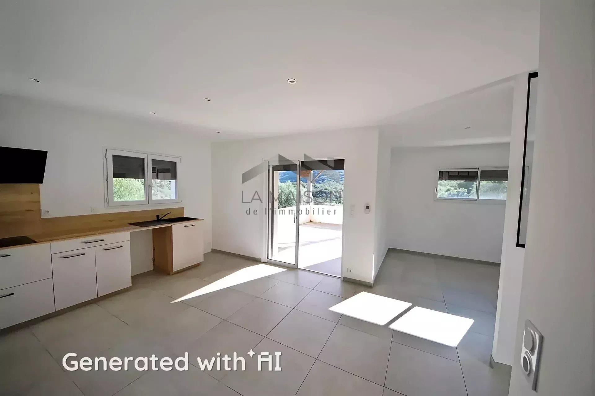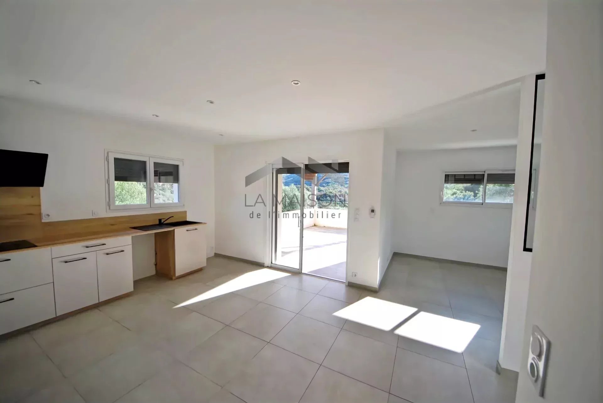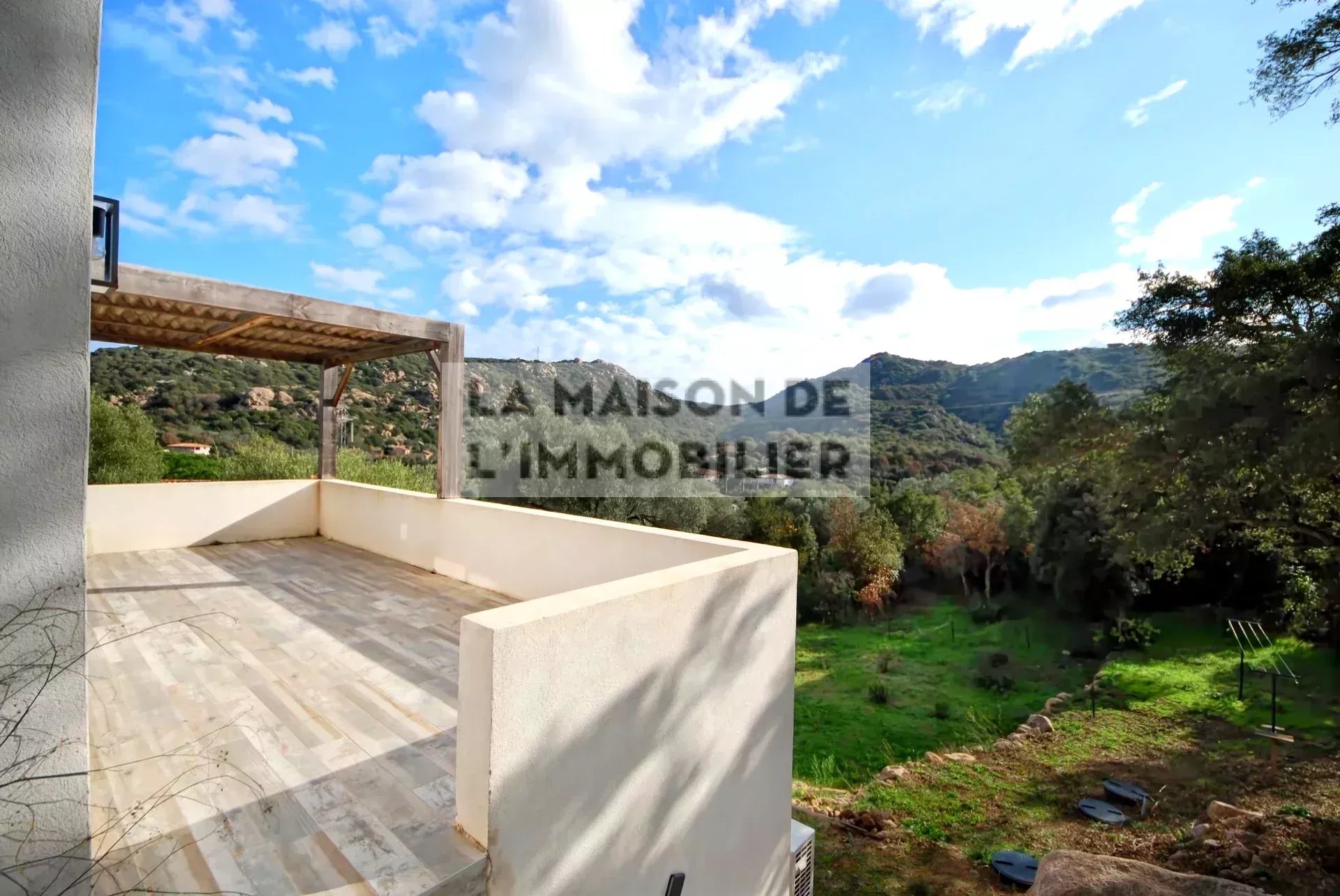 Dans un hameau de la commune de Sotta, venez découvrir cette villa implantée à flanc de colline et bénéficiant d'une vue et d'un environnement naturel d'exception. Cette habitation d'environ 82 m² dispose d'une entrée avec cabinet de toilettes indépendant et placard, d'un séjour attenant à une cuisine ouverte sur une terrasse couverte orientée au sud, d'un couloir desservant une salle d'eau et 3 chambres avec placard, dont une avec salle d'eau. Chaque pièce est équipée d'une climatisation réversible à commande individuelle. Au rez-de-jardin, un vaste garage d'environ 34 m² et un vide sanitaire accessible permettraient un aménagement aisé en studio ou T1. Une deuxième terrasse avec raccordements permet l'installation d'un jacuzzi ou d'une mini piscine. Le terrain est clos avec deux portails, l'un desservant l'entrée principale en partie haute et l'autre le garage.