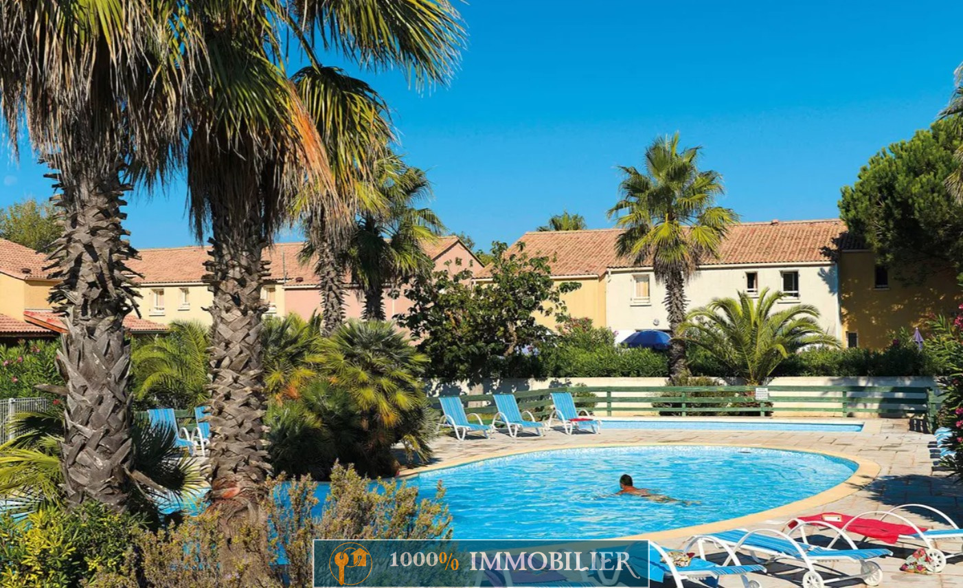 1000% IMMOBILIER vous propose en EXCLUSIVITÉ à Vendres Plage, dans la résidence calme et recherchée 'Le Grand Bleu: une maison de 33m2 environ+ terrasse 22m2 + place de parking privée et sécurisée (12.50m2). A 350 mètres de la plage et 300 mètres des commerces, découvrez cette maison vendue meublée et équipée ! Séjour/cuisine équipée 16m2, wc, placard, au-dessus : palier, salle d'eau, une chambre avec un lit de 140 et une chambre cabine avec 2 lits superposés. Double vitrage PVC. Résidence sécurisée avec caméras. Piscine et terrain de pétanque. Vous bénéficiez d'un bail commercial géré par Odalys (résiliable moyennenant une indemnité d'éviction) vous garantissant plus de 5000EUR de revenus par an avec possibilité d'habiter le bien dans le même cadre locatif. DPE en C et GES en A. Pour une visite contactez Philippe au 06 63 34 41 43