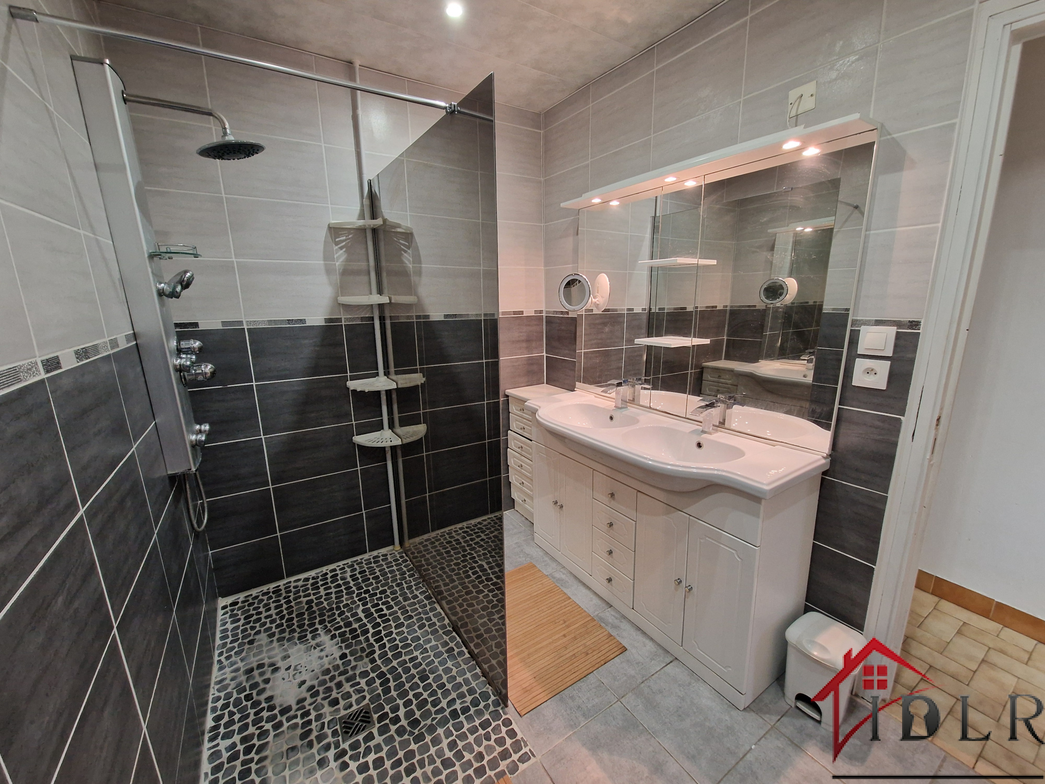 Elle se compose d'une entrée avec placard, 3 chambres dont une avec un grand dressing, une salle de bain, une cuisine ouverte aménagée et équipée, un cellier, un WC, un double garage, ainsi que deux grandes terrasses, dont une entièrement couverte, parfaites pour profiter de l'extérieur en toute saison.