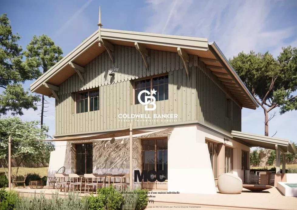 Au cœur du quartier très prisé du Moulleau, à quelques minutes à pied des plages et des commerces, cette villa traditionnelle de type Gaume, saine et solide, offre environ 80 m² de plain-pied et un fort potentiel de rénovation. Implantée sur un jardin arboré et verdoyant, elle comprend actuellement un séjour avec cheminée, une cuisine indépendante, deux chambres, une salle de bains, ainsi qu’une annexe dans le jardin. Plusieurs projets sont envisageables : Remise au goût du jour de la maison et de son annexe pour créer une villa de trois chambres sous les pins. Extension du rez-de-chaussée d’environ 40 m² (budget estimatif : 260 000 € HT). Projet ambitieux développant jusqu’à 175 m² habitables (budget estimatif : 600 000 €, visuels disponibles). Un permis d’agrandissement est déjà accordé pour atteindre 137 m² habitables et créer une piscine. Informations clés : Prix : 1 190 000 € HAI – honoraires 3 % (34 000 €) inclus à la charge de l’acquéreur DPE : E (290) – GES : E (63) Estimation annuelle des coûts énergétiques : 1 200 € – 1 690 € Pour plus d’informations et dossier complet, contactez Marina Tonneau. Risques : www.georisques.gouv.fr