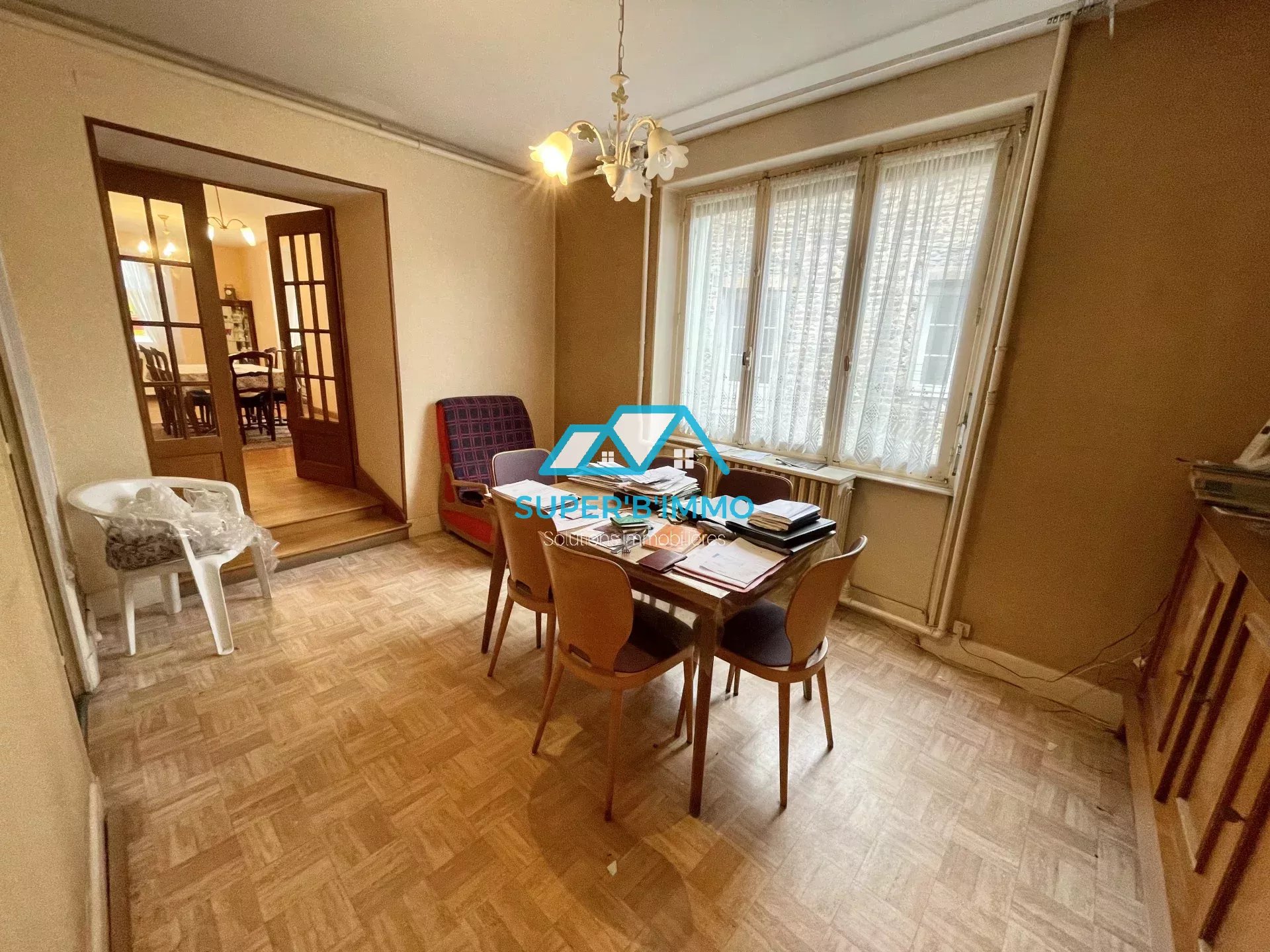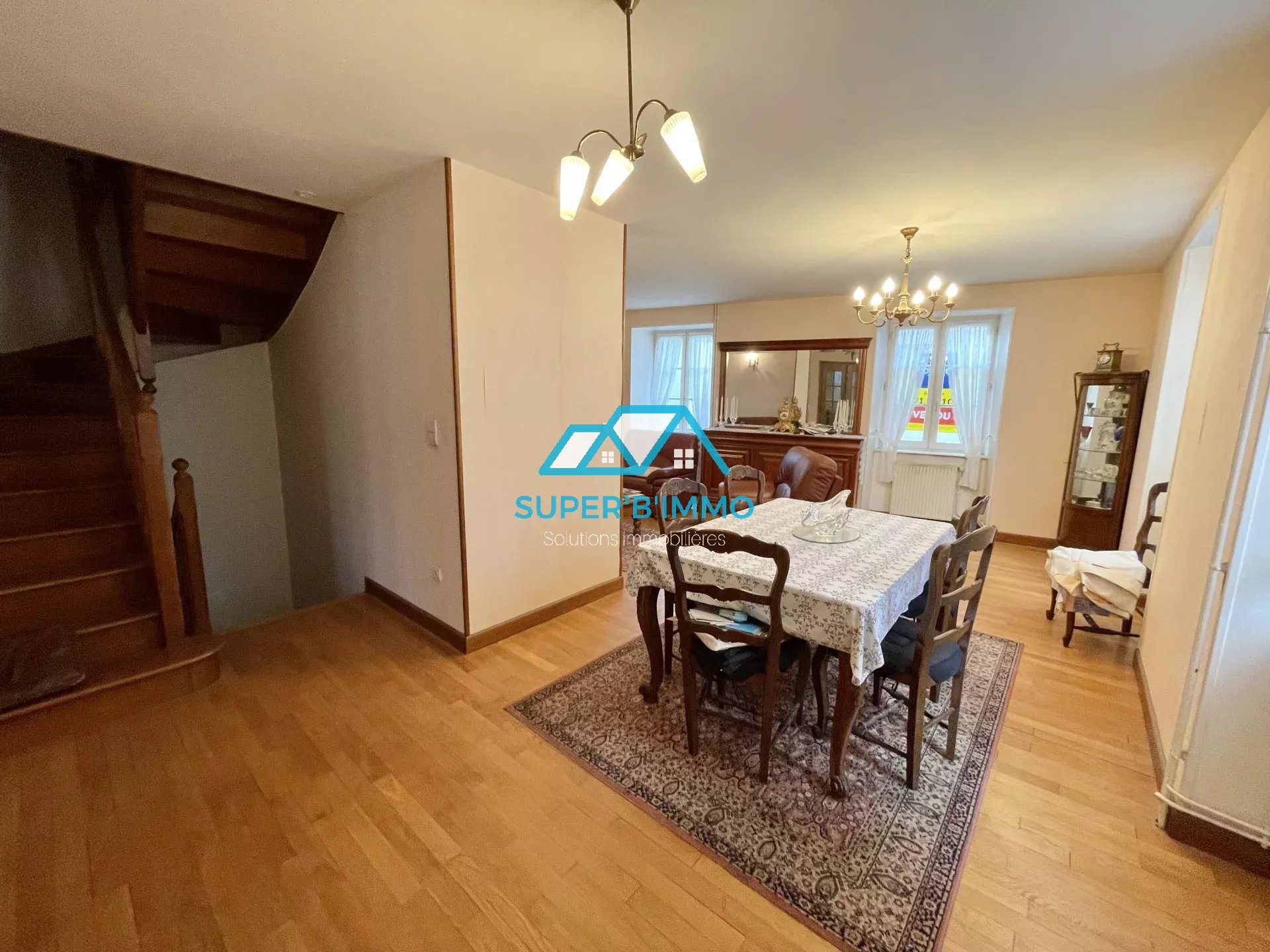 Sur la commune de Champagnac-Le-Vieux, maison de bourg de 133m2 avec deux garages composée : - au rez-de-chaussée : une entrée avec placard, un WC, une salle d'eau, deux garages et une chaufferie - au premier étage : un double séjour, une salle à manger, une cuisine et un WC au deuxième étage : 4 chambres, une salle de bain et un WC. La maison est composée de deux parties, une restaurée dans les années 2000 et l'autre à rénover.