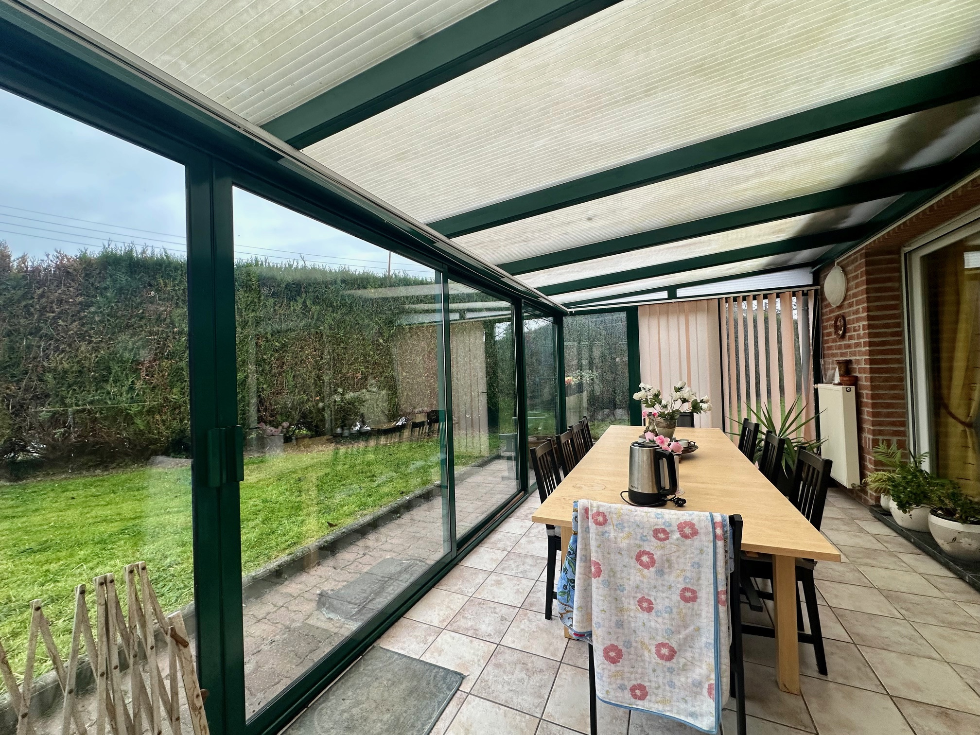 Nous vous proposons dans un secteur calme, proche des grands axes ce plain-pied individuel de 120m2 comprenant un hall d'entrée, une cuisine équipée, un salon séjour communiquant sur une véranda qui donne sur un vaste jardin, une buanderie, une salle de bains, wc et 3 belles chambres.