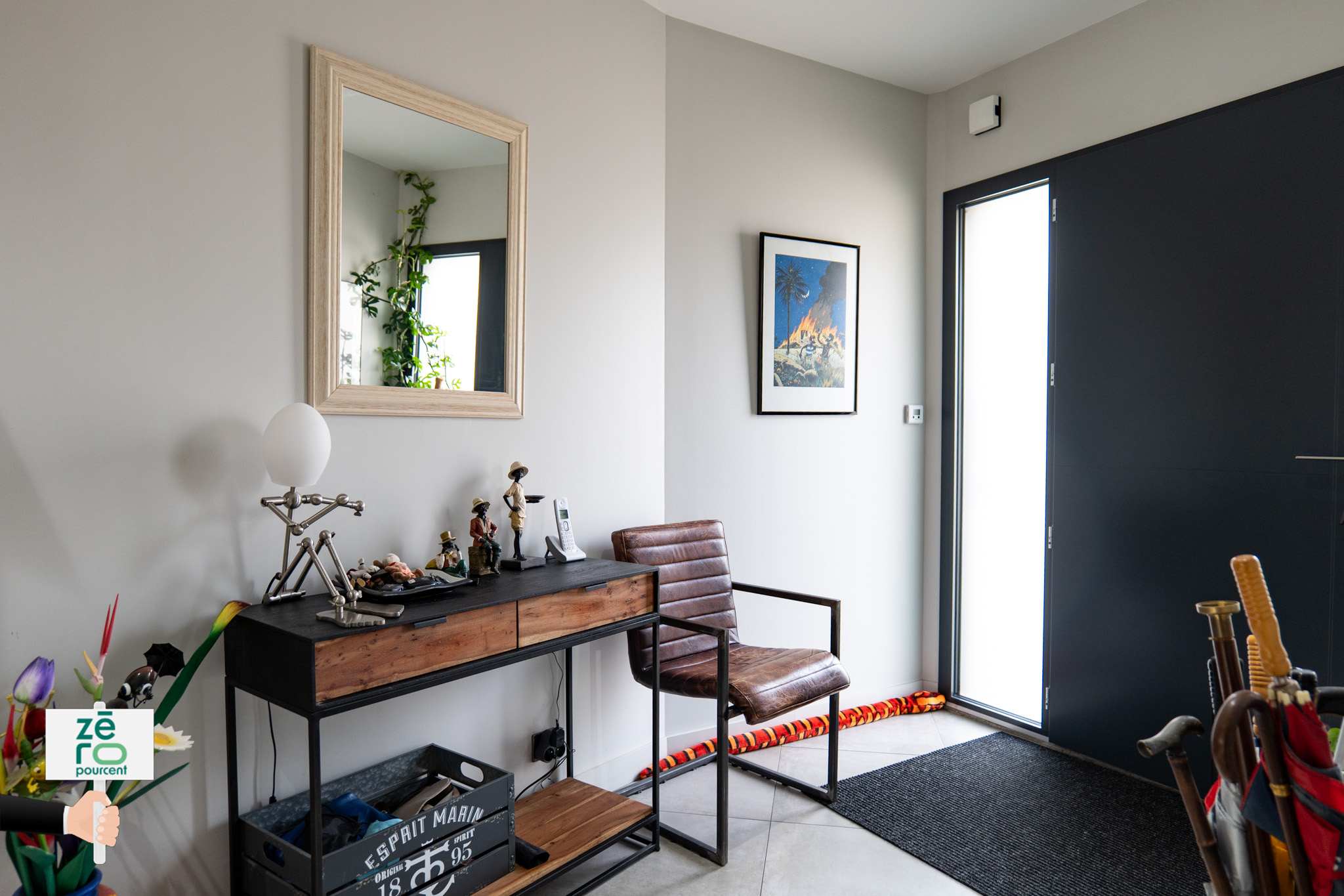 La maison s'ouvre sur une grande pièce de vie lumineuse, sublimée par une cuisine ouverte haut de gamme, idéale pour accueillir famille et amis dans une atmosphère conviviale.