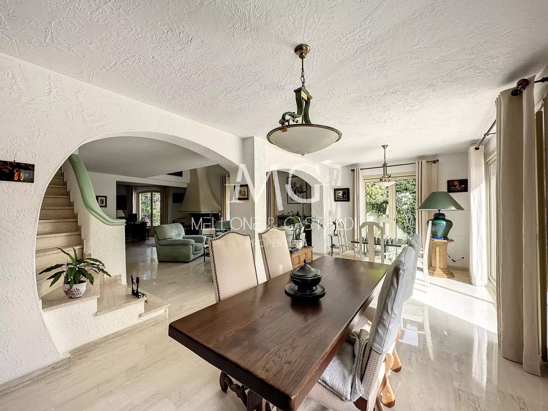 Belle Villa de 320m2 avec piscine idéalement située dans le quartier très recherché du haut du Petit Juas, au calme et sans vis-à-vis. Rez-de Chaussée Jardin Entrée Wc invités Salon cheminée donnant sur très belle terrasse Salle d'eau avec douche italienne Double séjour avec très belle hauteur sous plafond avec mezzanice Salle à Manger avec terrasse Cuisine Bureau / Petite chambre / bureau 1er Étage Mezzanine ouvrant sur séjour Chambre parentale avec grand placard dressing Salle de bain avec baignoire et wc Terrasse vue mer baie de cannes Chambre Salle de bain avec baignoire et wc Rez-de-Jardin Piscine (Possibilité d'aménagement en appartement indépendant, avec accès maison et entrée séparée) Salle de Billard Salle de sport Buanderie Chambre avec séjour Salle de douche Wc séparé Très Grande Cave / Vin Extérieur Piscine de 75m3 et 2,20m de profondeur Douche avec wcet lavabo Pool house avec cuisine d'été équipée