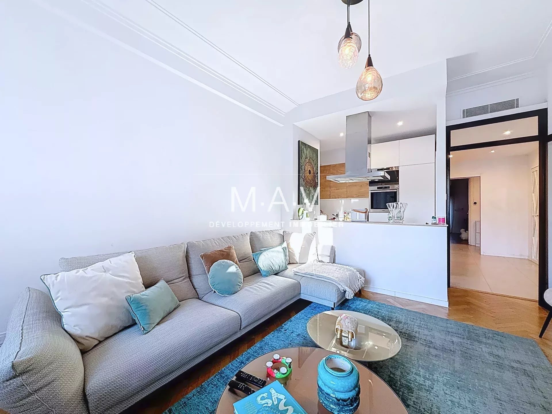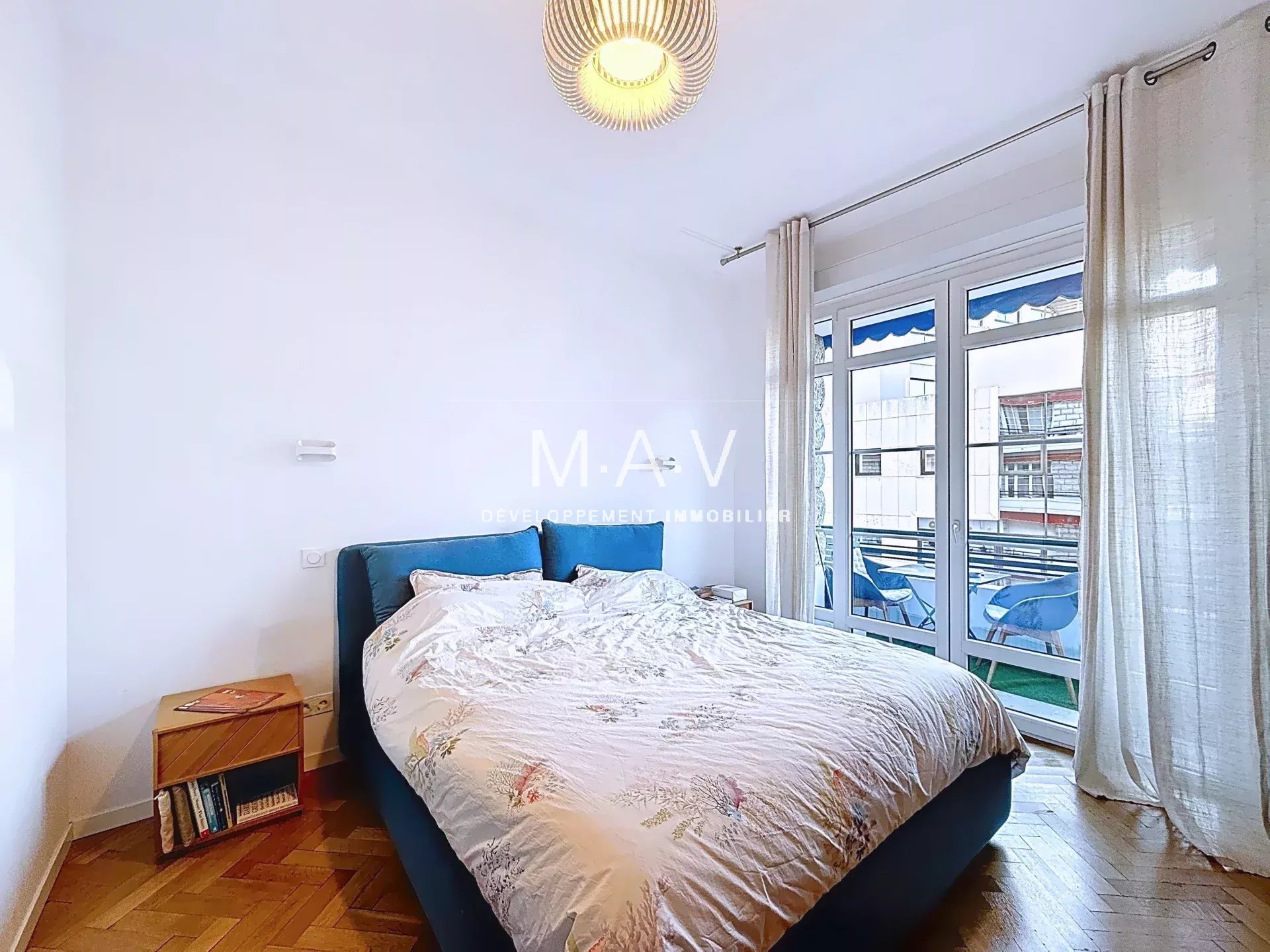 Situé au cœur du Carré d'Or, rue Alphonse Karr, au sein d' un immeuble moderne avec ascenseur. Son emplacement est idéal : à deux pas des commerces de prestige et parfaitement desservi par les lignes 1 et 2 du tramway, assurant une connexion directe entre le Port et l'Aéroport. Nous vous présentons un superbe 4 pièces de 104 m², niché en étage élevé. Baigné de lumière grâce à sa double exposition Est/Ouest, cet appartement traversant a été rénové avec un souci du détail, offrant des prestations de qualité. Ses Atouts Majeurs : Confort et Esthétisme : Climatisation réversible intégrée dans les faux-plafonds, parquet massif et doubles vitrages. Agencement Optimal : Une entrée accueillante mène à un confortable séjour prolongé par une cuisine ouverte, moderne et entièrement équipée, formant un espace de vie convivial et lumineux. Il se compose d'une élégante suite parentale ouvrant sur un balcon, avec son dressing attenant et sa salle de bain privative avec toilettes. Deux autres chambres avec placards intégrés, ainsi qu'une salle de douche avec WC, complètent l'espace nuit. Le bien est complété par une cave en sous-sol, parking public à seulement 30 mètres de la résidence. Dossier de présentation avec vidéo disponible sur demande.