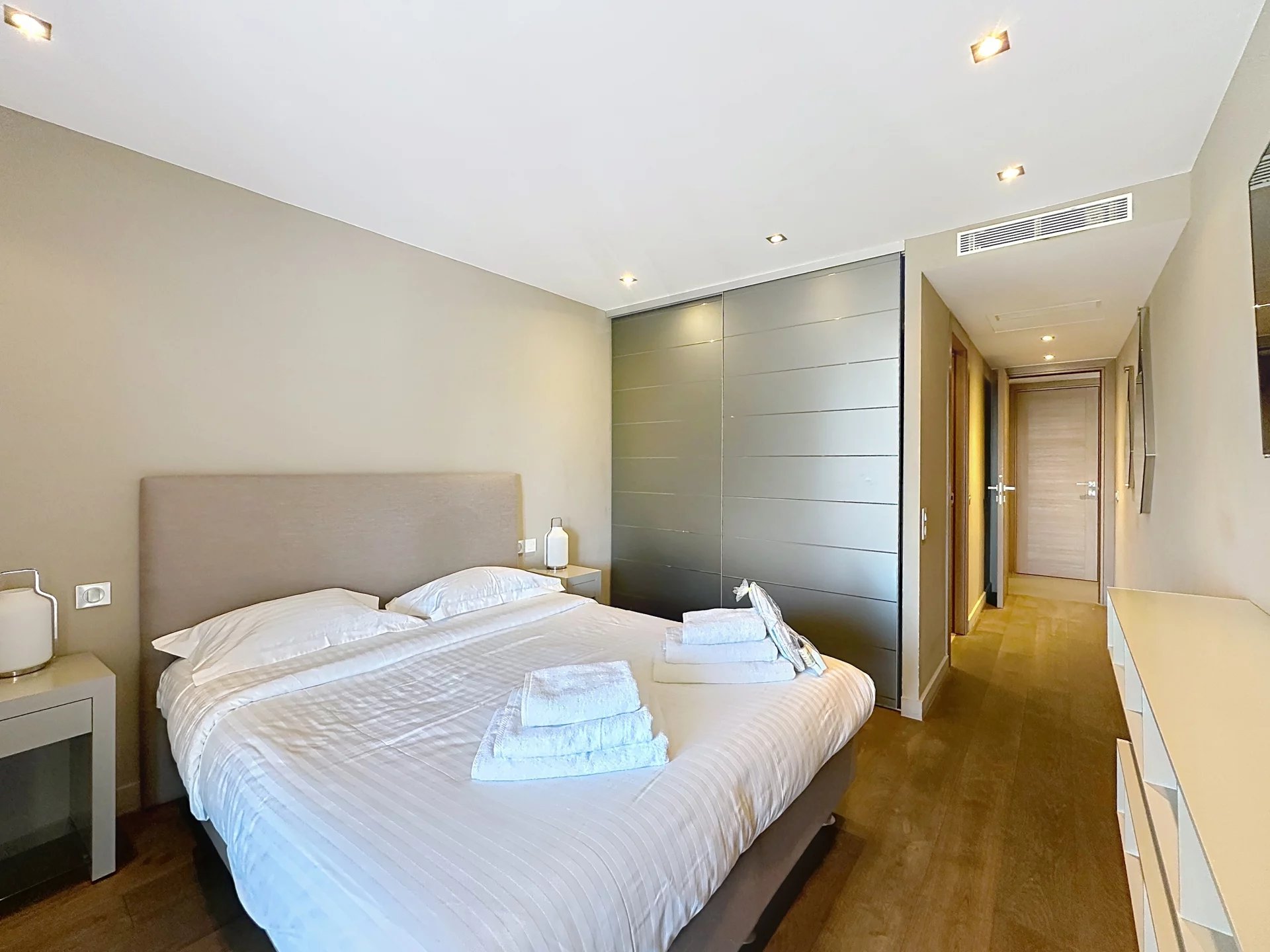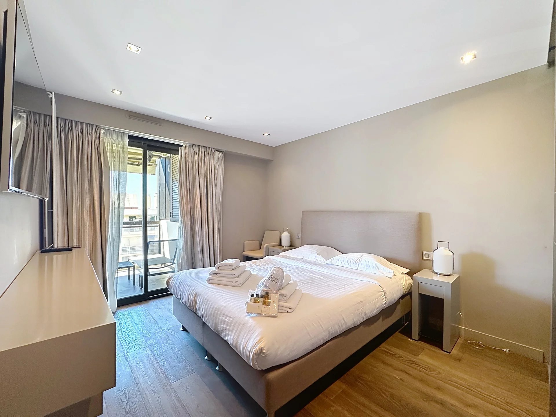 Cannes Banane – Idéalement situé au cœur du quartier le plus prisé de Cannes, à seulement quelques pas de la Croisette, des plages et de la rue d’Antibes, cet appartement d’exception de 89 m² se trouve au 5ᵉ étage d’une résidence de grand standing, juste derrière le célèbre hôtel Carlton. Rénové avec élégance, il offre une entrée avec WC invités, un séjour lumineux ouvrant sur la terrasse, ainsi qu’une cuisine fermée entièrement équipée bénéficiant d’un accès à la loggia arrière. L’espace nuit se compose de deux belles chambres en suite, chacune disposant de sa propre salle de douche et de toilettes, assurant un confort optimal et une parfaite intimité. Les pièces principales s’ouvrent toutes sur une large terrasse plein sud, offrant un agréable aperçu mer et un véritable espace de vie extérieur. Une cave et un double garage en sous-sol complètent ce bien, un atout rare dans ce secteur très recherché. Un appartement aux prestations haut de gamme, idéal en résidence principale, en pied-à-terre ou en investissement locatif, au sein de l’un des emplacements les plus convoités de Cannes.
