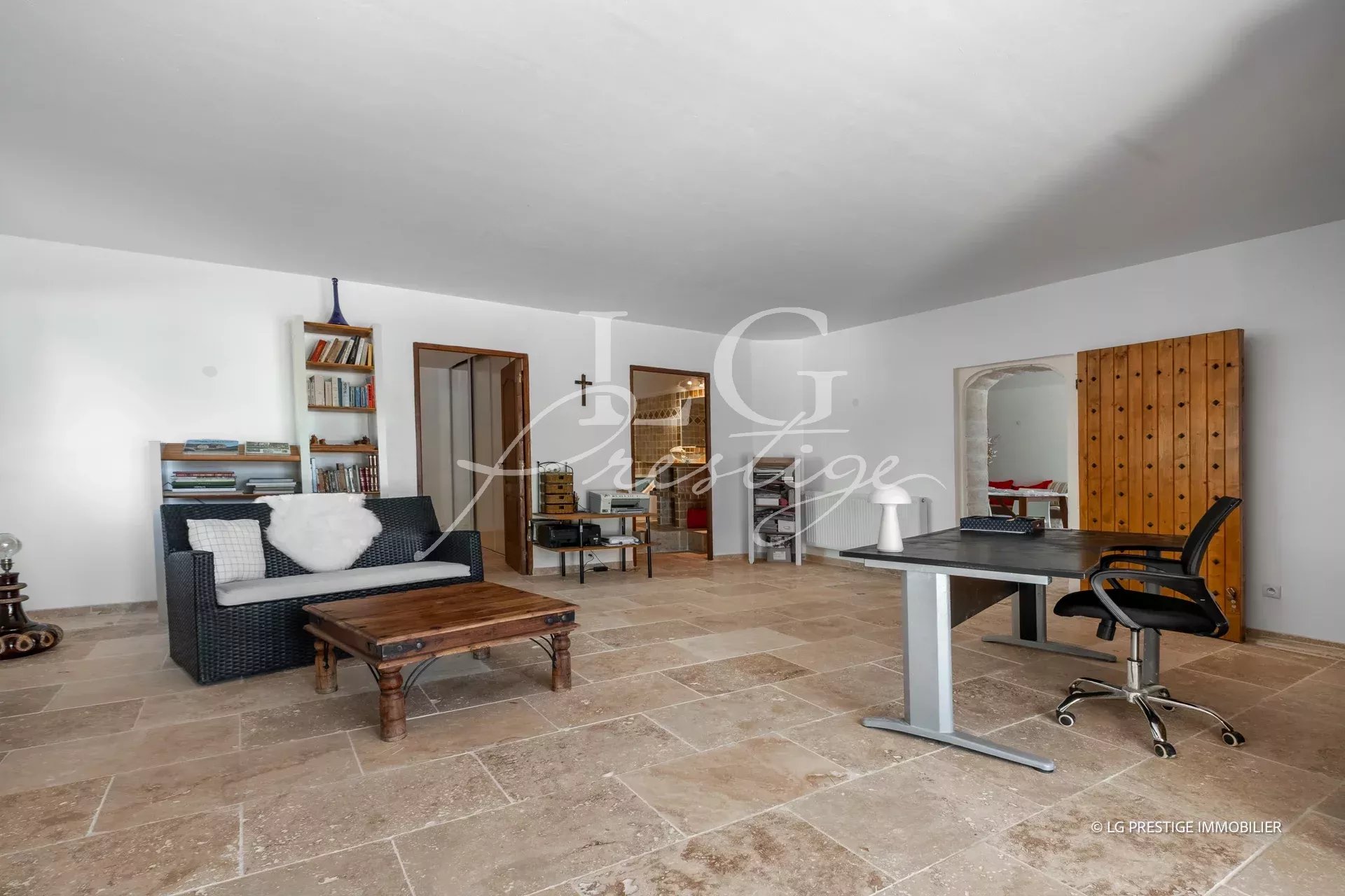 Au calme absolu, à proximité du village de Fayence et du lac de Saint-Cassien, découvrez cette villa offrant un fort potentiel de division en deux logements distincts, grâce à ses deux entrées indépendantes – parfaite pour deux familles, un projet locatif ou une activité mixte. Étage principal : Un vaste salon lumineux avec cheminée, une salle à manger ouverte sur une cuisine équipée, le tout donnant sur une grande terrasse avec vue dégagée. Une suite parentale, deux chambres supplémentaires et une salle de bain complètent ce niveau. Rez-de-jardin (entrée indépendante) : Un appartement 2 pièces déjà aménagé, une grande chambre avec salle d’eau pouvant devenir un logement supplémentaire, ainsi qu’une salle de réception avec bar pouvant être transformée en 3ᵉ unité d’habitation selon vos besoins.