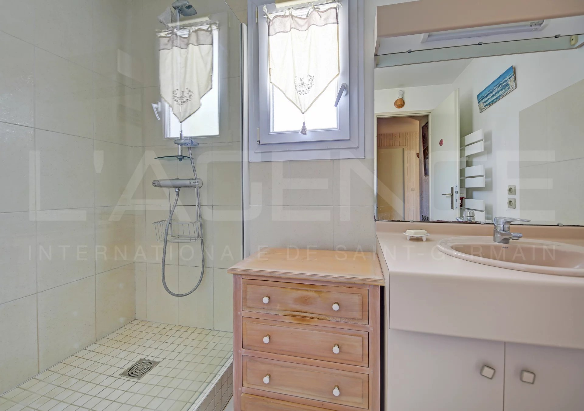 ACHERES - Quartier Chêne Feuillu en limite de foret et à 2.8km de la gare RER A. Jolie maison avec jardin en très bon état comprenant : entrée sur double séjour avec accès jardin, belle cuisine aménagée, 3 chambres, salle de douches, 2 toilettes, combles aménagées en 4ème chambre ou bureau, garage et parking extérieur. Plus d'informations sur demande. Idéal première acquisition. A VISITER RAPIDEMENT AVEC L'AGENCE INTERNATIONALE !
