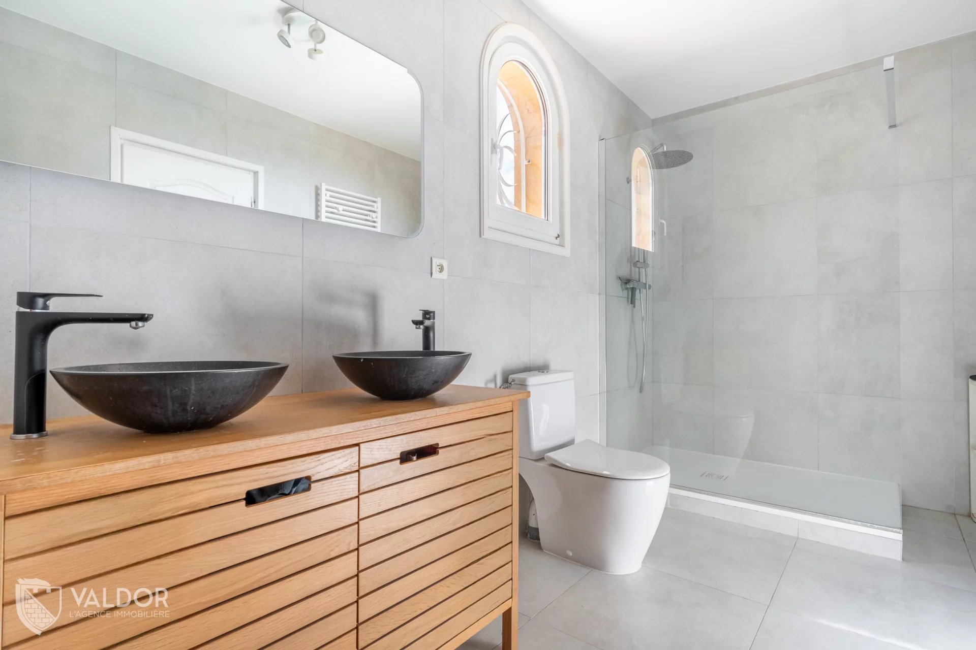 La cuisine contemporaine, récemment repensée, s'intègre parfaitement à l'ensemble et invite à la convivialité. Les deux salles de bain, modernes et élégantes, ainsi que les chambres confortables, témoignent du soin constant apporté à l'entretien de la maison.