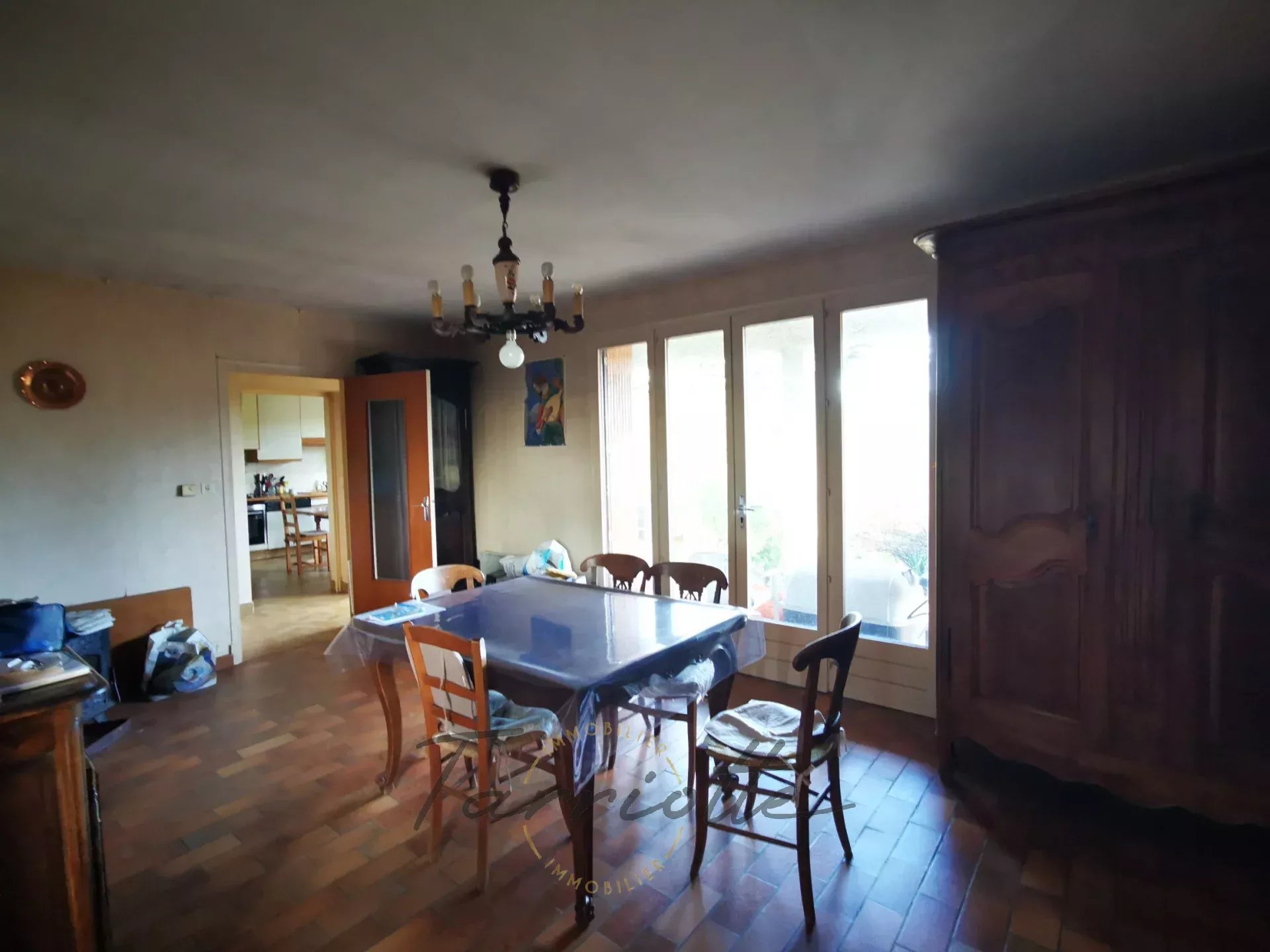 ALLAN - Au cœur d'un écrin de verdure parfaitement préservé et à l'abri des regards, cette villa à rénover de 1976 conjugue potentiel, luminosité et sérénité. Elle développe 121 m² de surface habitable incluant un appartement de 48 m² en rdc composé d'une pièce à vivre avec cuisine, 2 chambres, sdd et wc indépendant. A l'étage un espace séjour salon ouvert sur un terrasse couverte à l'est, une cuisine indépendante, deux chambres, sdb et wc indépendant. Grande terrasse côté sud. Egalement un grand atelier indépendant au sud de la propriété d'une superficie de 50.90 m² avec à proximité un bassin existant pouvant se transformer en espace piscine. Beau potentiel avec travaux importants à prévoir sur une parcelle de terrain en zone A de 6 490 m² avec partie verger et eau du Rhône. Classe énergie F. Réf 10729 Prix 299 000 € HAI. Votre agent Nathalie MARECHAL 06 72 72 92 73