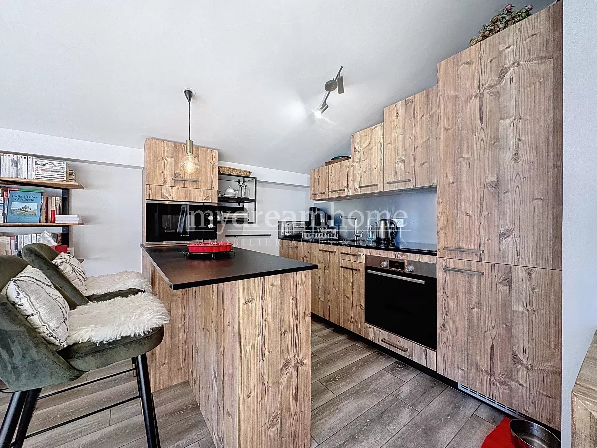 Cet appartement allie charme et confort grâce aux matériaux qualitatifs à la fois dans l'esprit montagnard et contemporain.