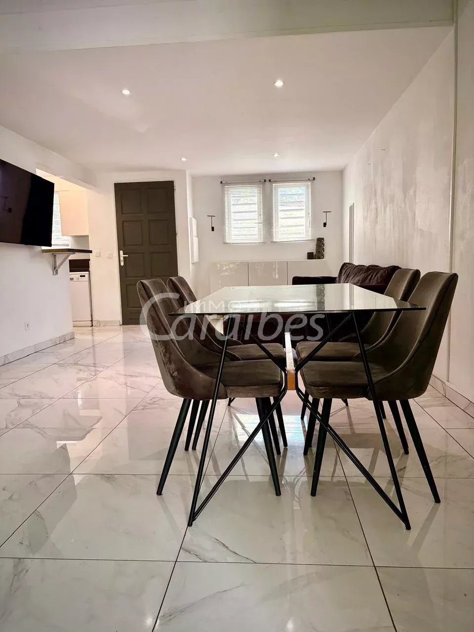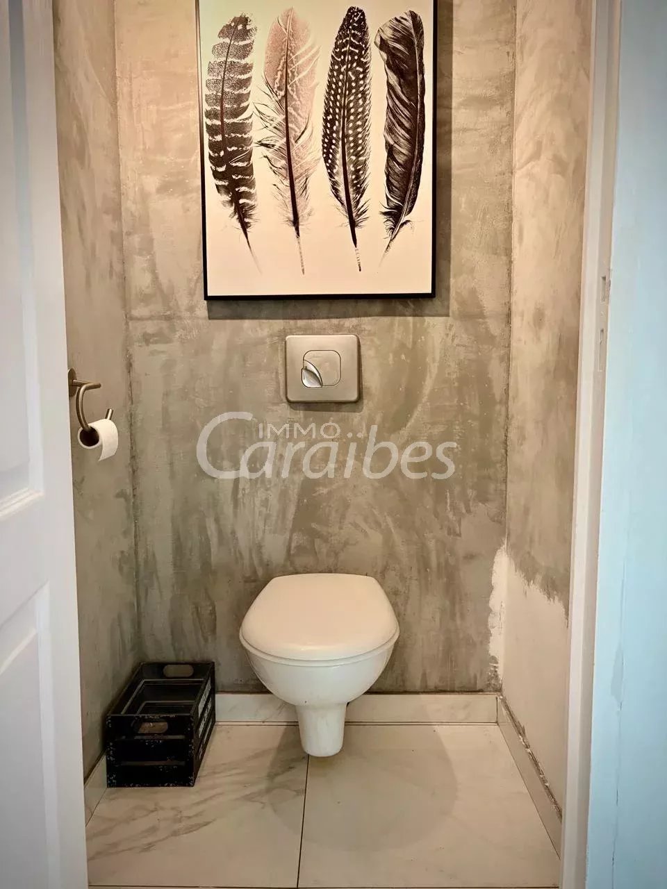 Immocaraibes vous propose cette jolie villa. Idéalement située dans le secteur prisé de la Baie Orientale. Loin de la foule avec sa spacieuse terrasse couverte donnant sur un jardin arboré et verdoyant ou vous pourrez profiter de la nature luxuriante. Descriptif: - Villa mitoyenne d'un seul côté - Surface habitable 81m² - 1 terrasse couverte sans vis à vis de 35m² - 1 citerne de 3m³ - Petite copropriété de 7 lots - Taxe foncière 1260 euros - Charges de copropriété 230 euros mensuelles - 2 places de parking cadastral devant la maison - La toiture a été refaite - 1 salon - 1 cuisine - 3 chambres - 2 salles de bain - 2 wc Au premier niveau - Une cuisine ouverte sur le salon qui donne sur la terrasse. - A droite un wc séparé avec une première salle d'eau - La première chambre donnant sur la terrasse - A l'étage - Deux autres chambres - A gauche une master room avec salle d'eau attenante ainsi qu'un bel espace de rangement - Un Wc - A droite une autre chambre Maison fonctionnelle et élégante à visiter sans attendre! Coup de cœur assuré Pas de travaux à prévoir Idéale pour une famille ou à rentabiliser en location annuelle ou saisonnière Tarif: 479 000 € (frais d'agence inclus, les honoraires sont à la charge du vendeur) Pour de plus amples renseignements ou organiser une visite, veuillez contacter votre agent SIMONE Fanny au (+590 690 20 12 10)immatriculé au RCS basse-terre 828 896 076 Sous la carte professionnelle ADC 9781 2 pour l'agence Immo Caraïbes 206 galerie les Acacias 97150 Anse Marcel CPI 9781 2