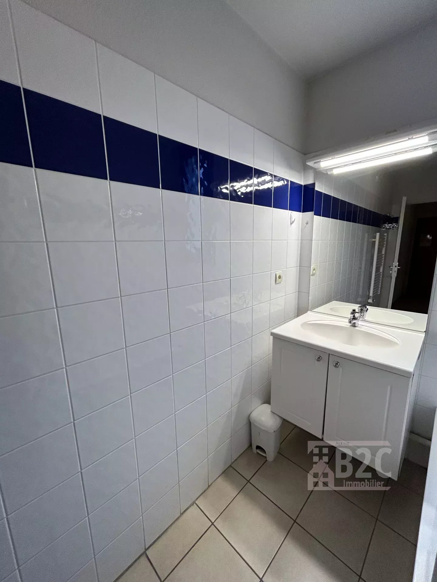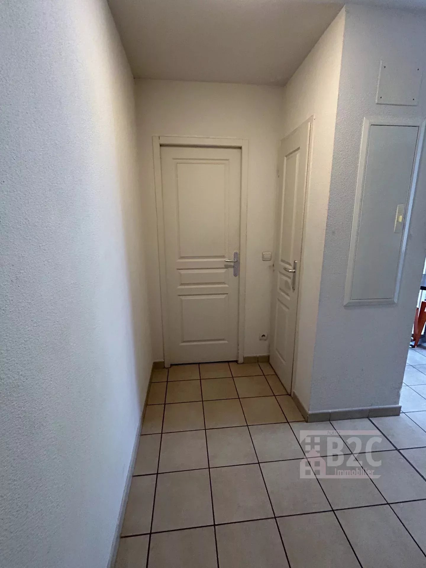 Il se compose d'une entrée (avec placard), un séjour (avec table, chaises, canapé convertible, bureau), une cuisine aménagée et équipée (plaques de cuisson, frigo, microonde à four), une chambre (placard aménagé) et une salle de bain (baignoire et meuble vasque).