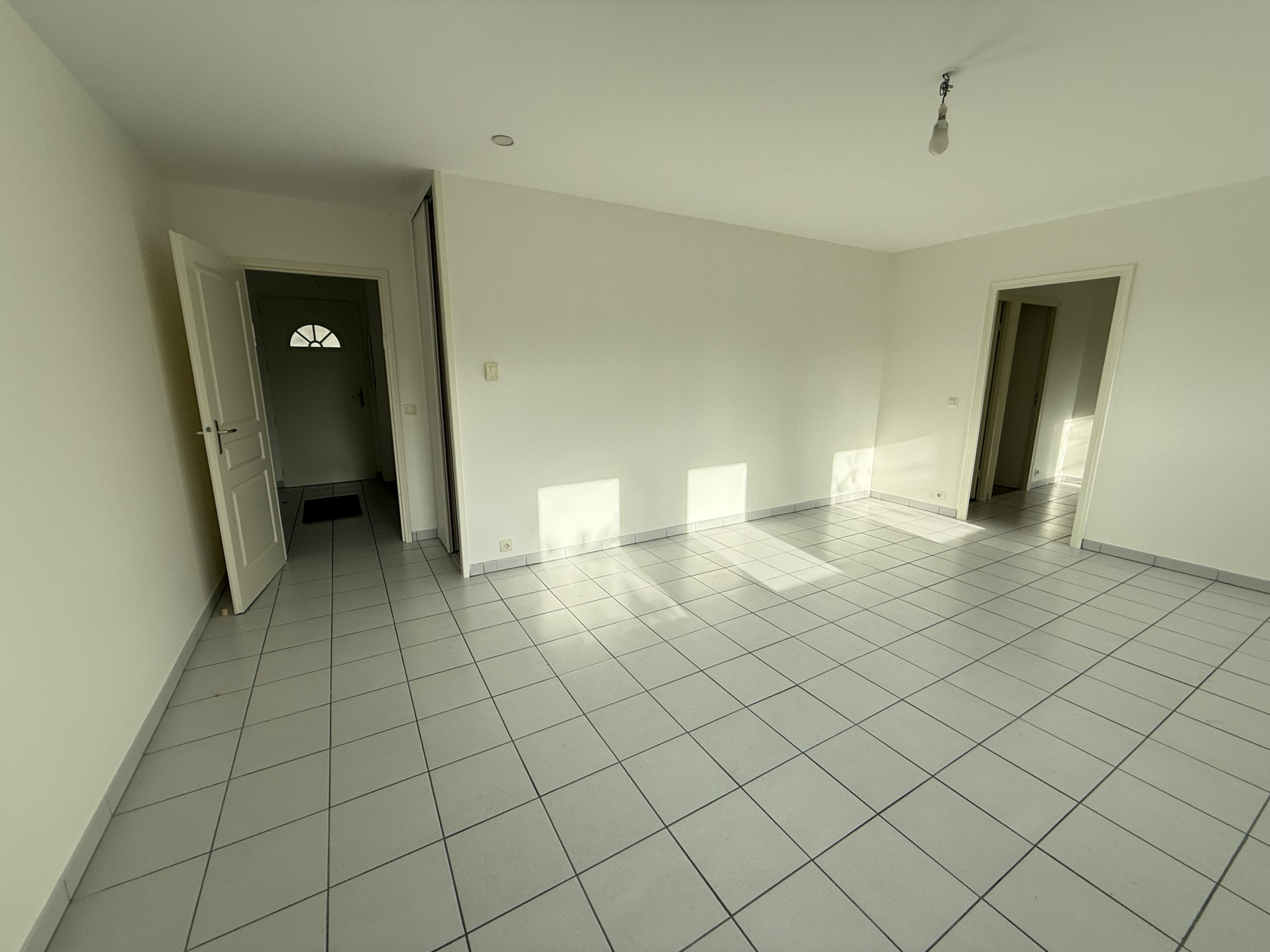 L'appartement comprend une entrée, un vaste séjour très lumineux exposé plein sud et avec vue sur le parc de la résidence, une cuisine à aménager (actuellement séparée mais pouvant être ouverte sur le séjour), un grand cellier, 2 belles chambrs avec placard, une salle de bains et un WC indépendant.