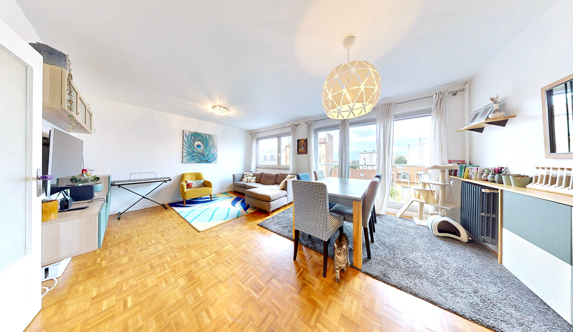 Situé au 5ème étage d'une résidence en pierre de taille bien entretenue avec ascenseur, ce bel appartement traversant de 73m² env offre un agencement fonctionnel, des volumes généreux et une belle luminosité sans aucun vis-à-vis. Il se compose d'une entrée, d'un séjour confortable de 25m² env, d'une cuisine indépendante aménagée, de deux chambres, d'un dressing, d'une salle de bains et de WC séparés. Une cave et un emplacement de parking complètent ce bien. L'appartement bénéficie d'un excellent plan sans perte d'espace, d'un calme appréciable, ainsi que d'un chauffage et d'une eau chaude collectifs. Il se situe à proximité immédiate de crèches, d'établissements scolaires (André Marsault, Jean Jerphanion), et des commerces de proximité. Côté transports, la gare des Vallées (ligne Saint-Lazare) est accessible en 6 minutes à pied, le tramway T2 (La Défense) en 16 minutes, et les lignes de bus 163/164 (Porte de Champerret). Copropriété de 135 lots - dont 46 lots habitation. (Pas de procédure en cours). Charges annuelles : 3303 euros.