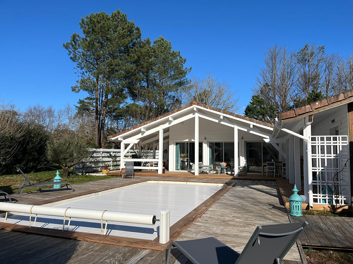 Située dans un environnement verdoyant et à seulement 5 min de la plage, cette maison allie confort, espace et modernité. Le salon-séjour spacieux bénéficie d'une belle hauteur sous plafond, créant une atmosphère chaleureuse et lumineuse. La cuisine ouverte est parfaitement intégrée à l'espace de vie, idéale pour les moments de convivialité. Elle offre quatre chambres, dont une avec salle de bains, douche et WC. Les trois autres, chacune avec sa propre salle d'eau et un second WC séparé, parfait pour une grande famille ou pour recevoir. A l'extérieur, profitez d'une agréable terrasse donnant sur une piscine chauffée ainsi qu'un sauna, le tout entouré de nature, sans vis-à-vis. Une maison prête à vivre, idéale pour les amoureux de la nature, tout en restant proche des commodités. Coup de coeur assuré ! William DUPAS (EI) Agent Commercial - Numéro RSAC : 838688414 - DAX.