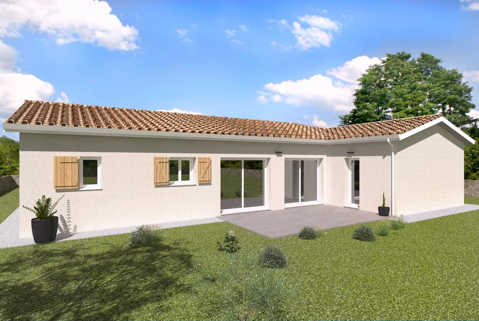 Projet de construction, entièrement sur-mesure, livrable sous 14 mois : Maison en L de 114 m² habitables avec une belle pièce de vie lumineuse, 3 chambres dont une suite parentale (dressing + salle d'eau), un bureau donnant sur la pièce de vie, une salle de bains équipée et 2 WC séparés. Cuisine ouverte sur la pièce de vie, cellier. Les + de ce projet : - de nombreuses garanties - une isolation renforcée conforme à la RE 2020 - chauffage et climatisation gainable - enduit g