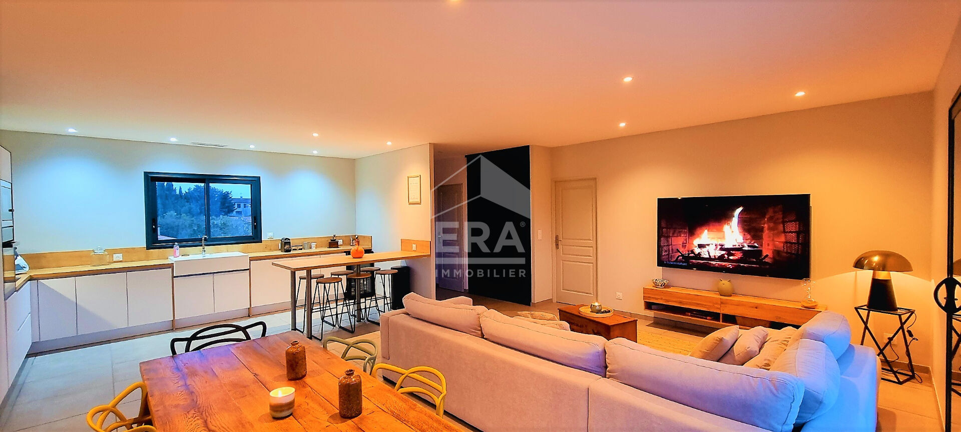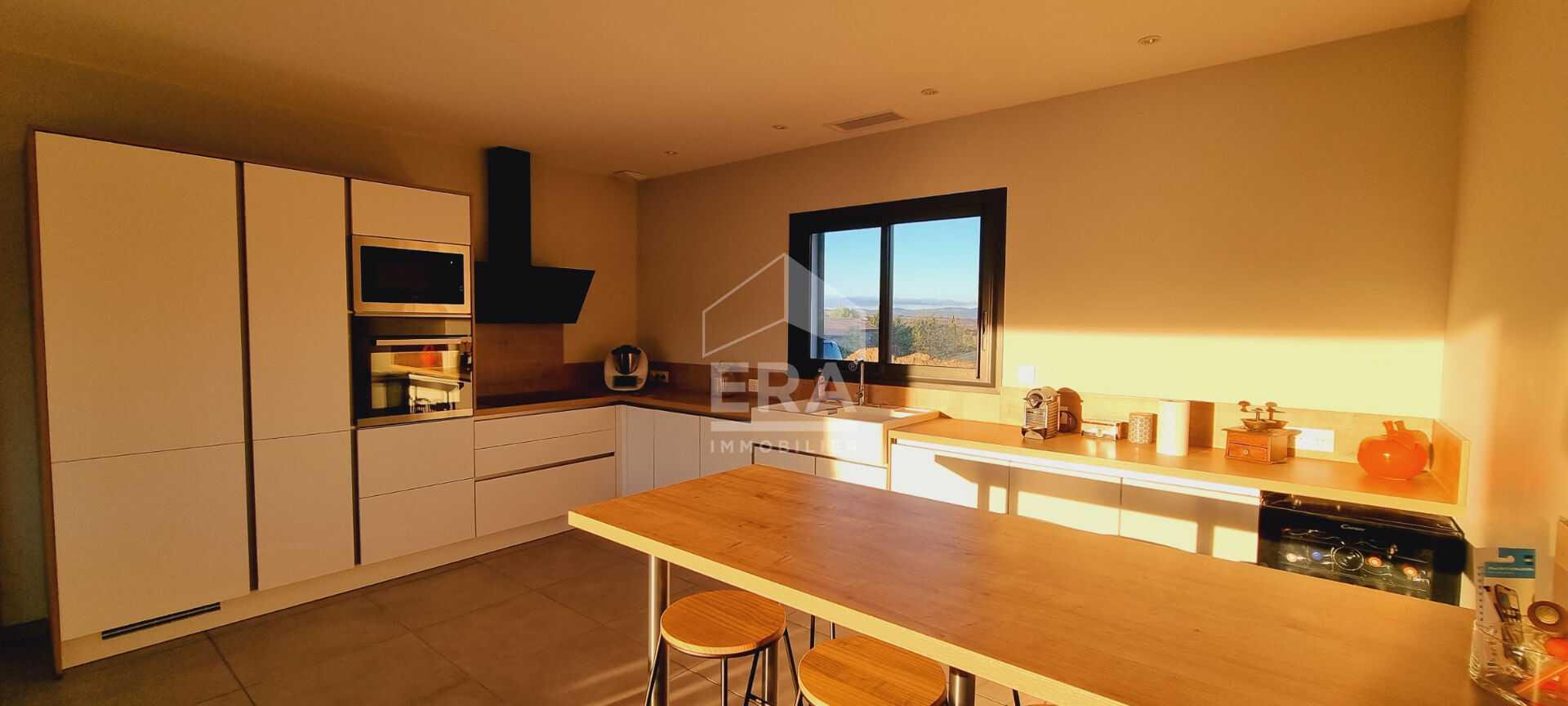 Village à 5 min de Limoux, Venez découvrir cette Villa de 107 m² sur une parcelle de 1750m² avec vue sur les Pyrénées hors lotissement, Construction de 2022, Pompe à Chaleur, domotique. Se compose d'un séjour/salon/cuisine donnant sur terrasse extérieure avec baie à galandage, de trois chambres et une salle de bains, Possibilité d'une quatrième chambre, bien rare sur le marché. (6.90 % honoraires TTC à la charge de l'acquéreur.)