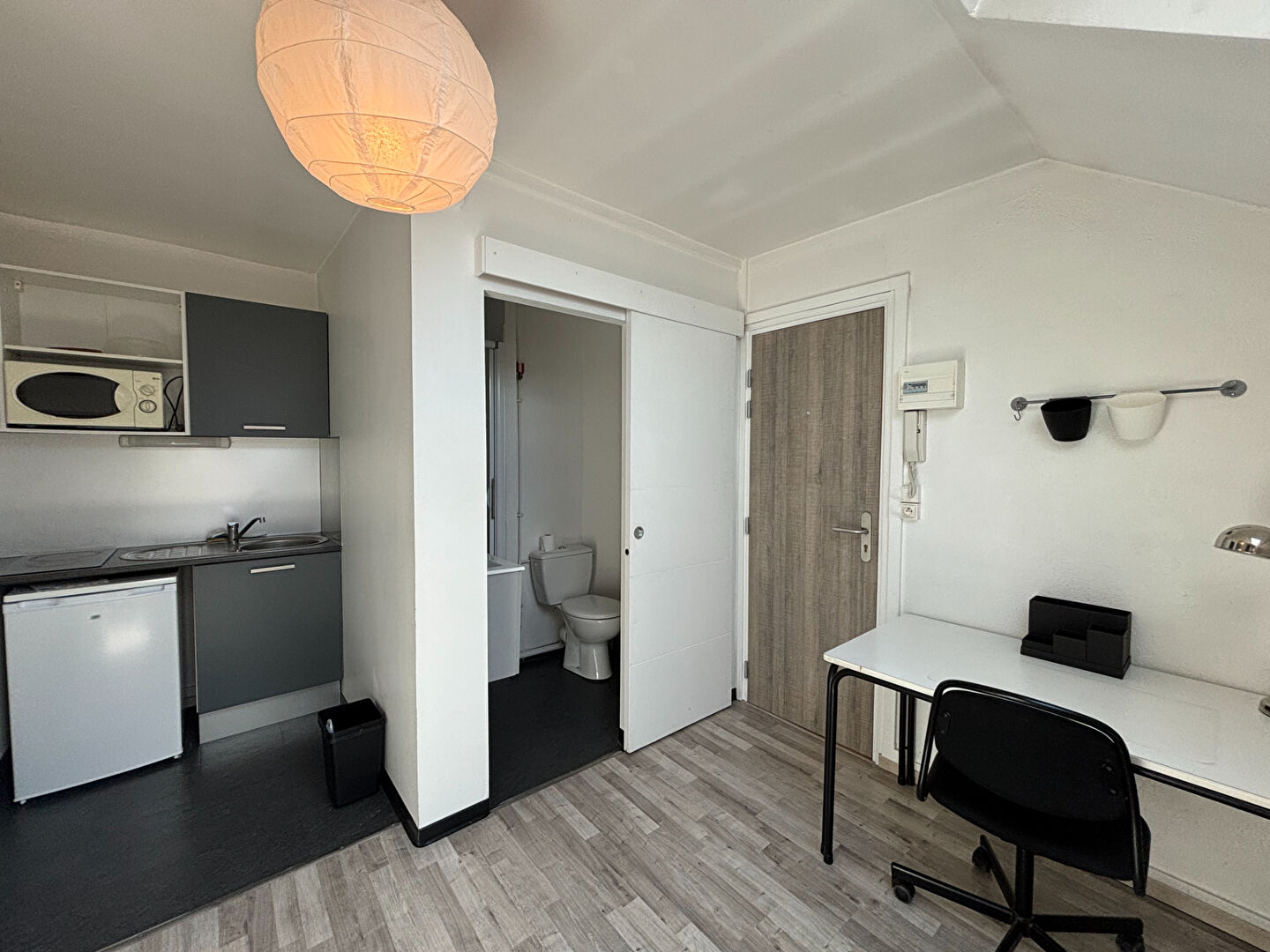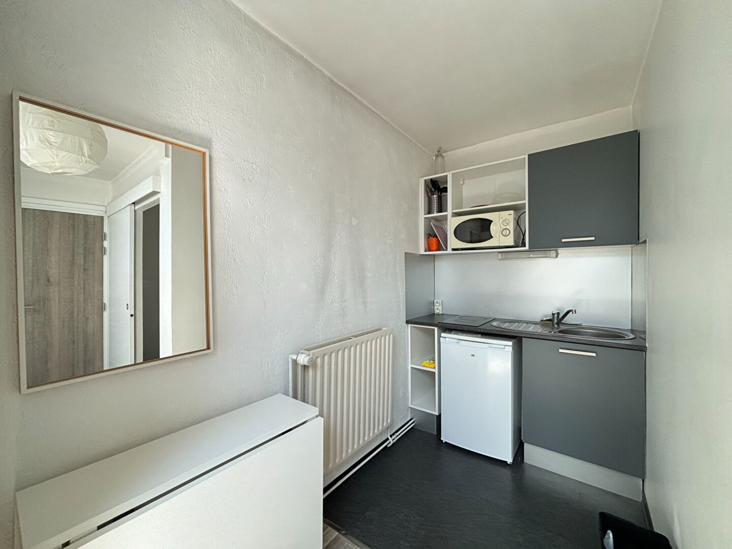 En hypercentre, au 3ème et dernier étage d'une bel immeuble ancien, rénové, un studio lumineux et meublé comprenant une pièce à vivre avec cuisine équipée et une salle de douche avec WC. Chauffage et production d'eau chaude collectifs, inclus dans les charges. Disponible le 30 décembre. Reims - 20 rue Chabaud lot 8