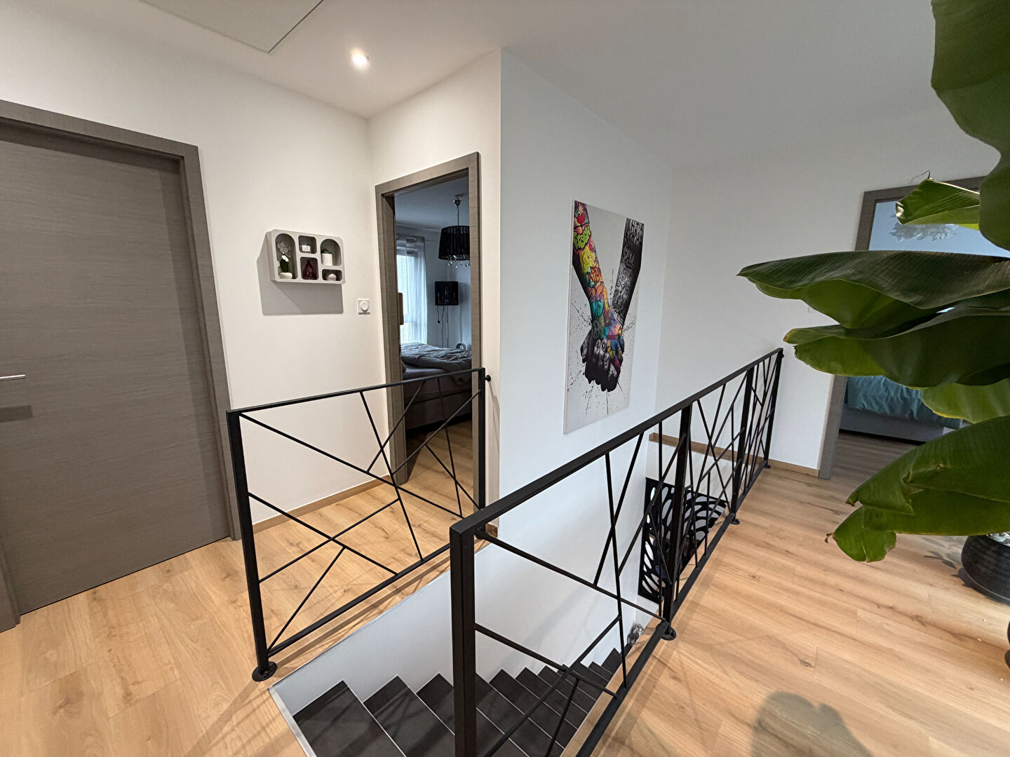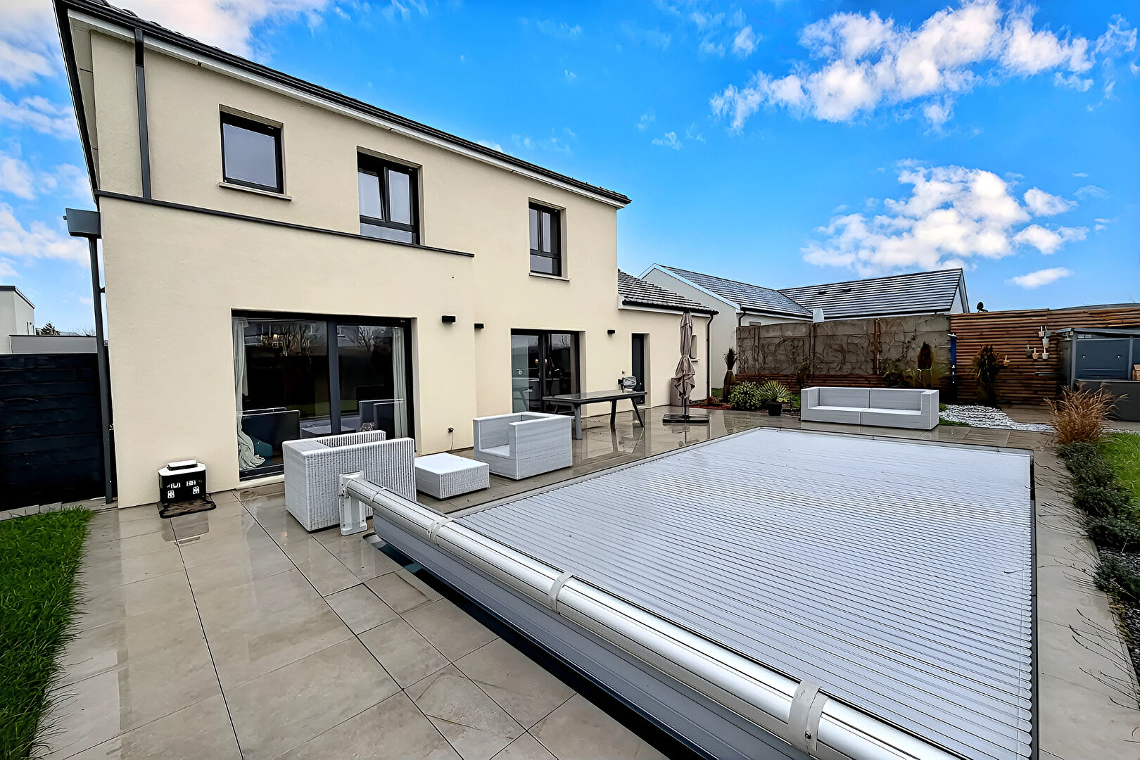 A Evendorff, au coeur d'un environnement paisible et recherché, se dévoile cette élégante maison individuelle construite en 2023. Une architecture contemporaine, des matériaux haut de gamme et des finitions entièrement abouties offrent un cadre de vie rare où confort et modernité se rencontrent harmonieusement. Dès l'entrée, le rez-de-chaussée s'ouvre sur une vaste pièce de vie de 53 m² baignée de lumière. Le parquet semi-massif apporte une touche chaleureuse tandis que la cuisine ouverte, entièrement équipée, séduit par la qualité de ses installations, son électroménager haut de gamme et son plan de travail en granite. Les larges ouvertures prolongent naturellement l'espace vers une grande terrasse carrelé qui domine une superbe piscine creusée de 7 × 4 m, chauffée et sécurisée par un volet motorisé, créant un véritable lieu de détente. Attenante à la cuisine, une buanderie pratique permet rangement et fonctionnalité et fait le lien vers un garage double entièrement carrelé, capable d'accueillir deux véhicules. Un espace bureau ainsi qu'un WC séparé complètent de façon idéale ce niveau. A l'étage, le palier dessert deux chambres confortables, une salle de bain familiale équipée d'une douche et d'un double vasque ainsi qu' un second WC indépendant. La suite parentale, d'une surface de 21 m², offre un espace privilégié avec dressing et salle de bain privative, véritable cocon intime. Classée en A au DPE, la maison bénéficie d'une pompe à chaleur air-eau alimentant un chauffage par le sol à chaque niveau. Les volets motorisés, l'isolation de qualité ainsi que les prestations globales viennent renforcer l'efficacité énergétique et le confort quotidien. A l'extérieur, le jardin entièrement clôturé et arboré accueille un abri de jardin permettant le stockage et l'organisation du local piscine. L'ensemble se situe dans un petit lotissement calme, sans vis-à-vis, à proximité immédiate des écoles. Un bien « coup de coeur », sans travaux, prêt à accueillir une nouvelle histoire ! Les informations sur les risques auxquels ce bien est exposé sont disponibles sur le site www.georisques.gouv.fr.
