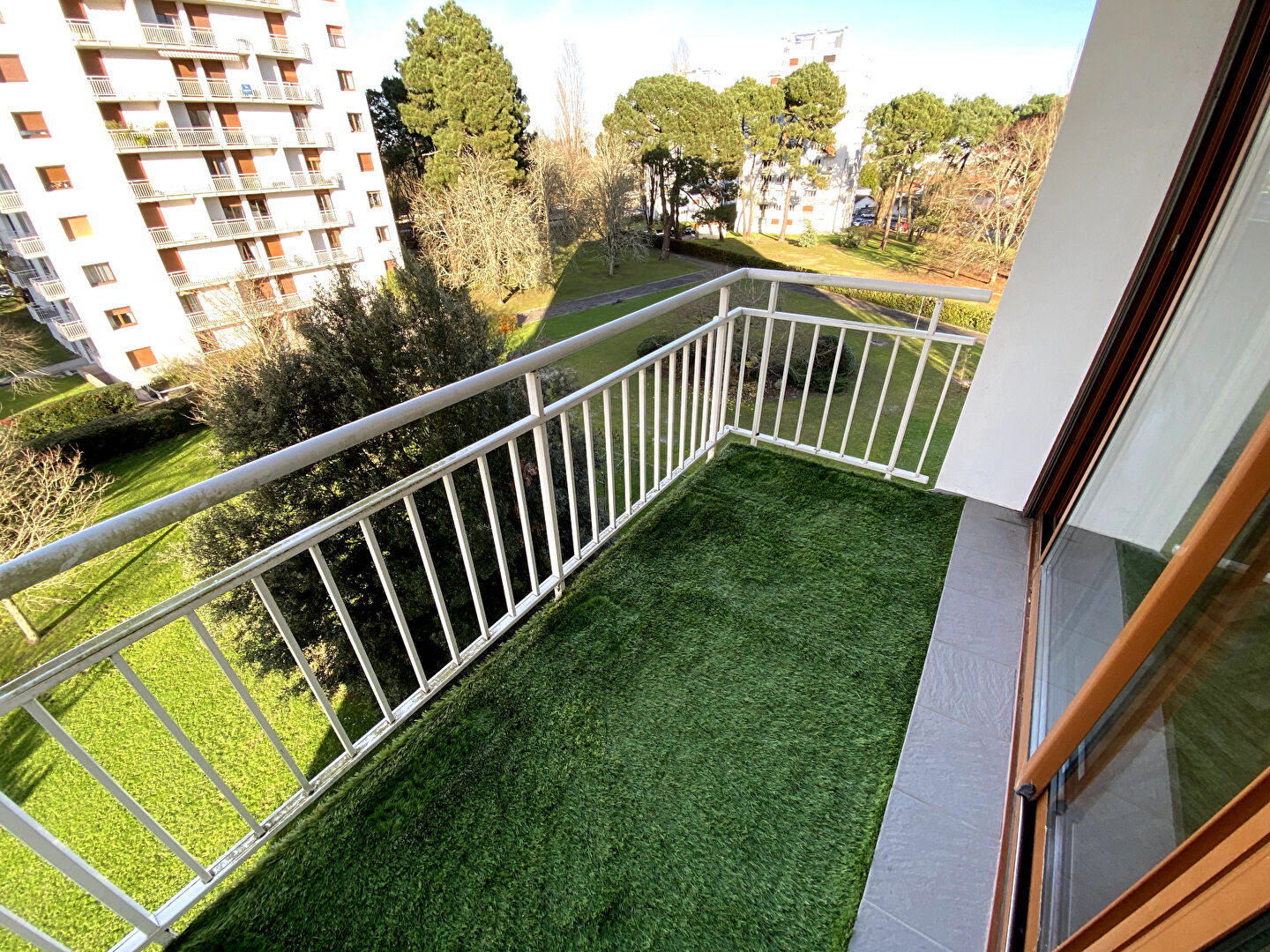 Mérignac secteur La Glacière / Mondésir / Bourran. Rénovation énergétique de la résidence et de l'appartement OK. Grand T3 de 84 m2 comprenant : entrée, séjour double de 30 m2 donnant sur balcon, cuisine équipée indépendante avec loggia, deux grandes chambres de 12 m2 et 17 m2 donnant sur balcon, une salle d'eau, un WC indépendant et un cellier au sein de l'appartement. Un lot supplémentaire cave au sous-sol de la résidence vient compléter ce bien. Bien situé, aux pieds du Parc de Bourran, à proximité des commodités, des lignes de bus et du Tram A, lumineux et agréable à vivre. Belle opportunité ! (5.71 % honoraires TTC à la charge de l'acquéreur.) Copropriété de 316 lots - dont 132 lots habitation. (Pas de procédure en cours). Charges annuelles : 2090 euros.