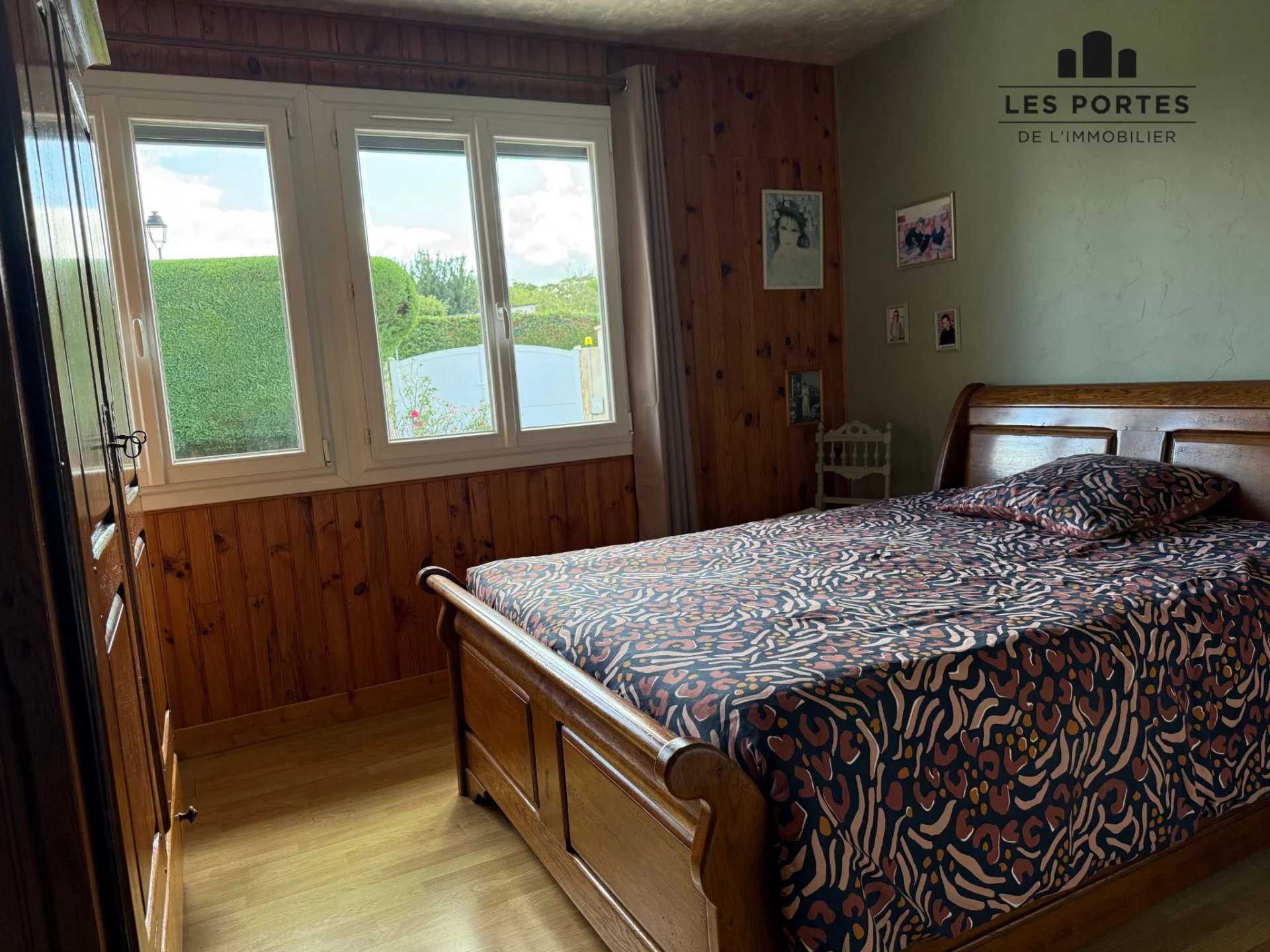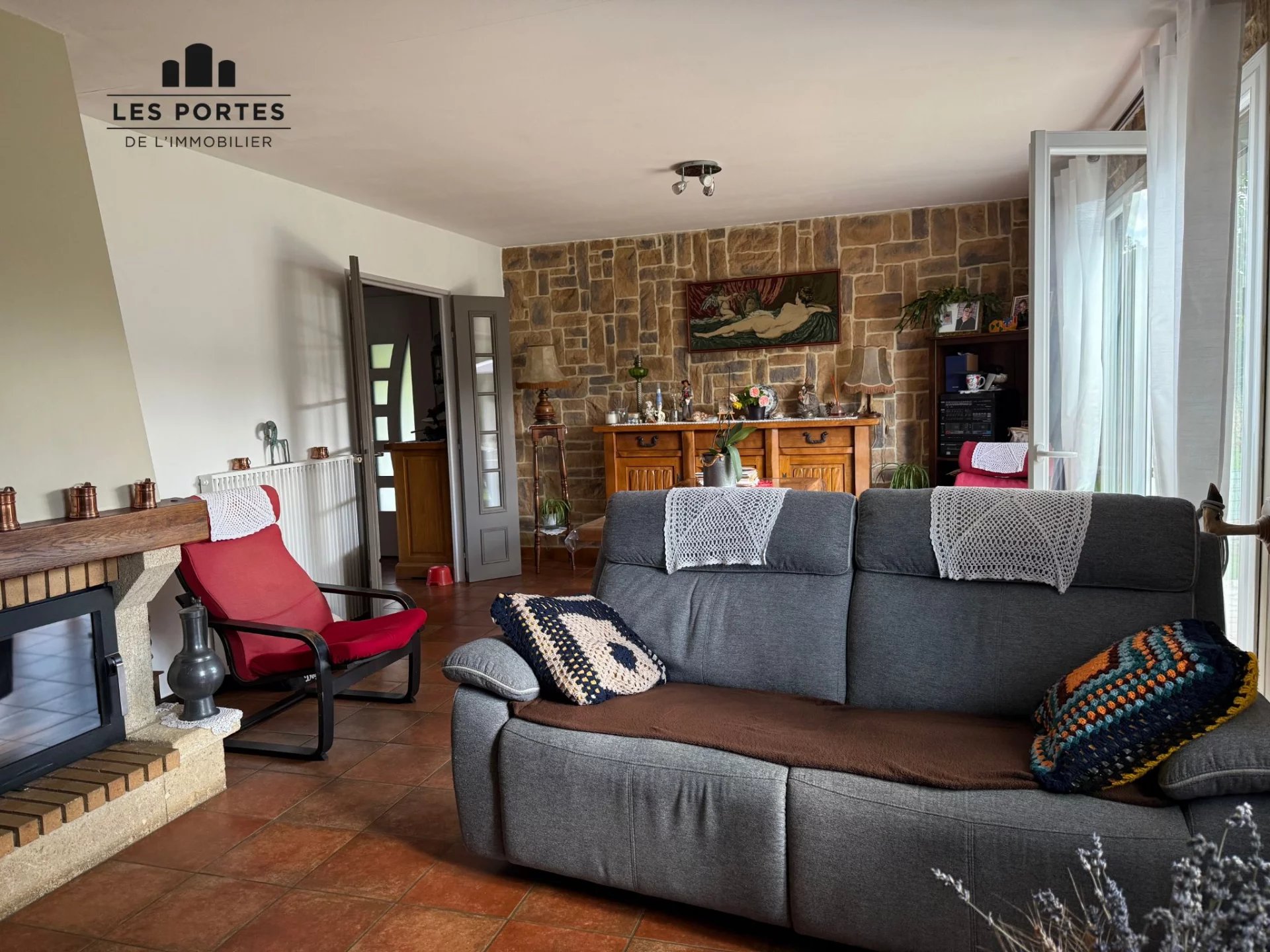 - entrée avec placard (2,86 m²), cuisine (7,54 m²), buanderie (3,9 m²), dégagement (5,81 m²), séjour avec cheminée (27,62 m²), dégagement (0,65 m²), trois chambres avec rangements (9 - 9,33 - 12,31 m²), salle d'eau (4,4 m²);
