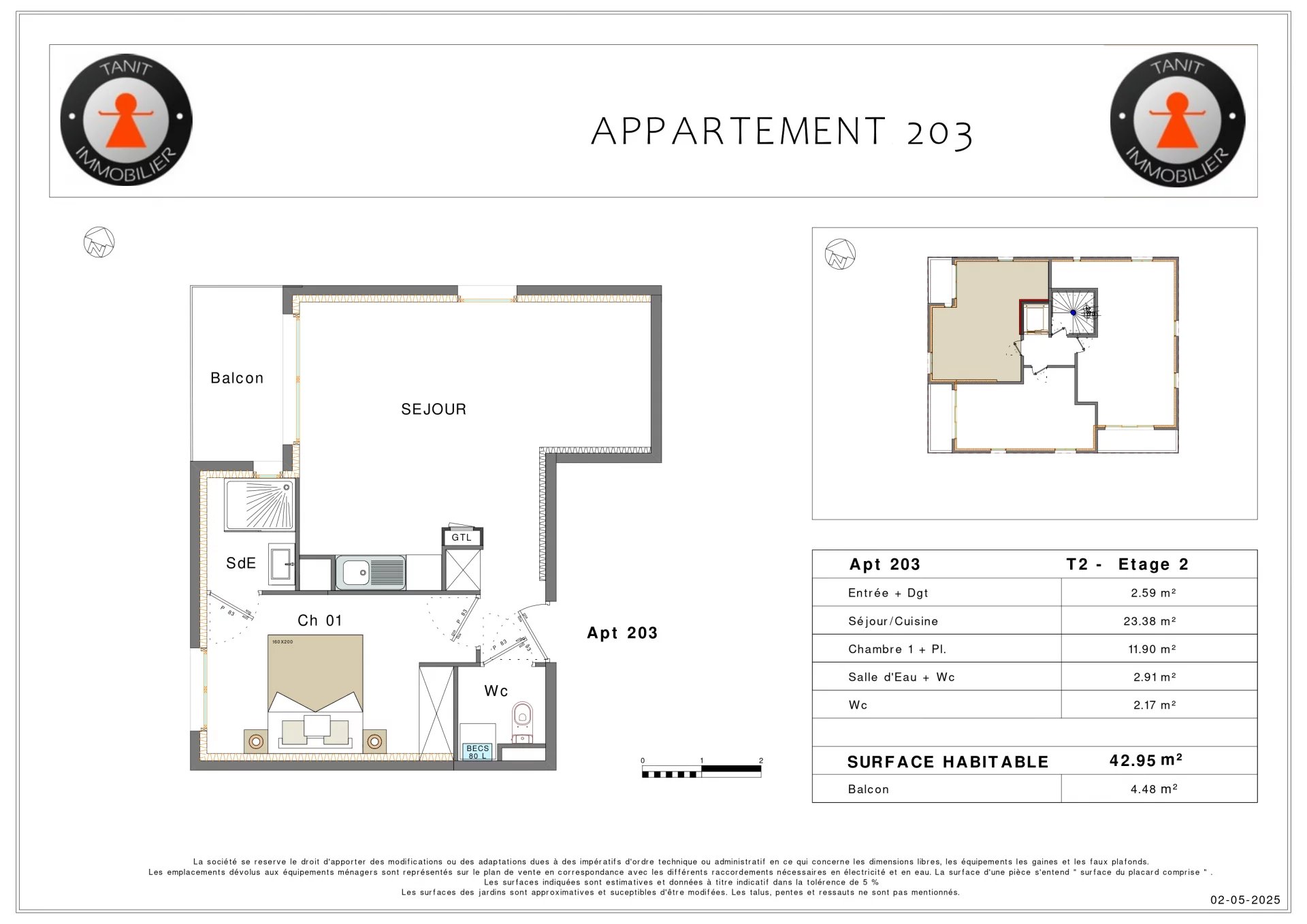 Découvrez ce superbe T2 de 43 m² avec balcon, situé au 2ᵉ étage.