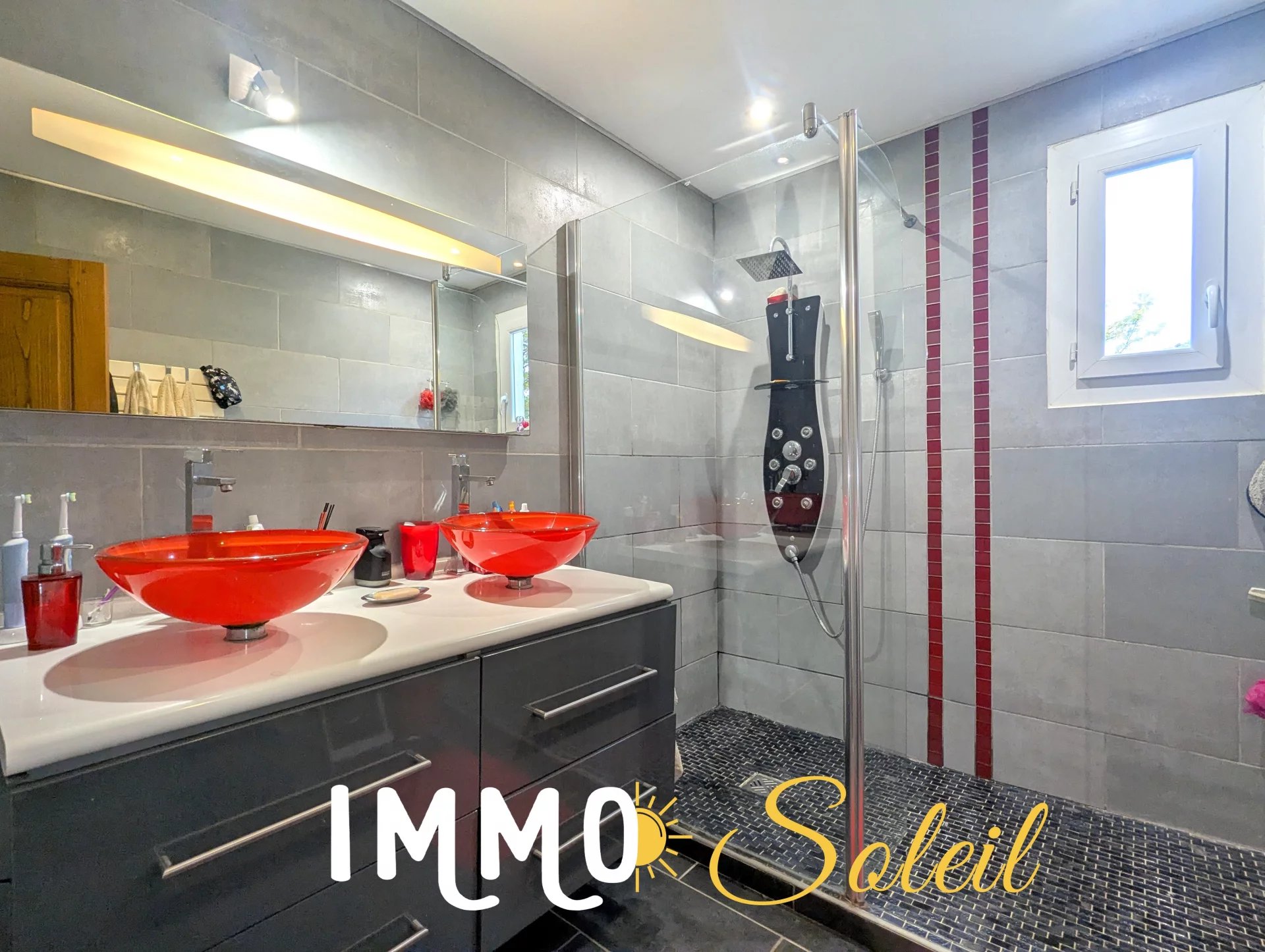 Equipements : panneaux photovoltaïque, climatisation réversible, pompe à chaleur, poêle à bois, chauffe eau thermodynamique,volets roulants électriques, fenêtres PVC à double vitrage, portail automatique.