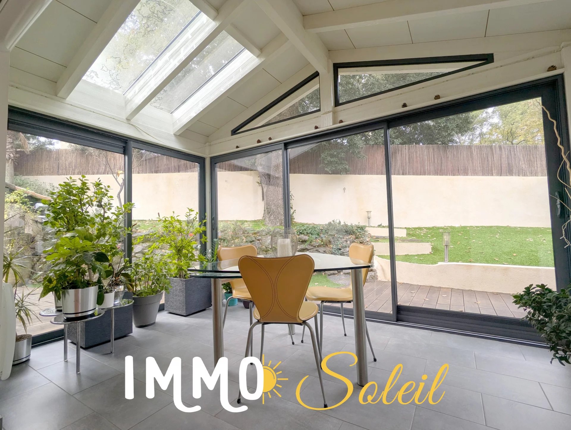 une très agréable véranda de 10 m², spacieux cellier-buanderie, placard, WC suspendu lave-mains, 3 chambres, une salle de douche à l'italienne.