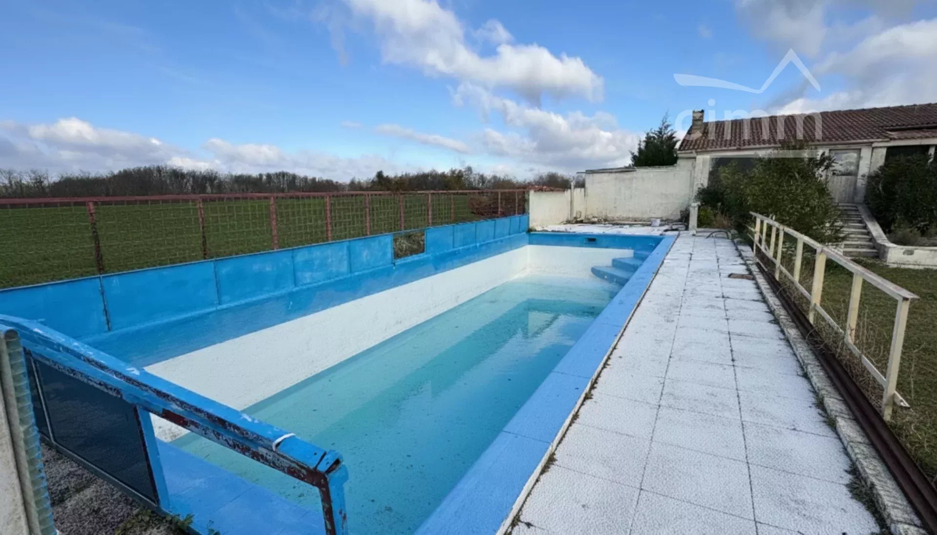 L’ensemble est implanté sur une parcelle de 1 489 m². Vous profiterez également d’une grande piscine en béton de 12 m de long (40m² environ), ainsi que de plusieurs dépendances comprenant une terrasse, un garage/atelier, une cave et un espace potager.