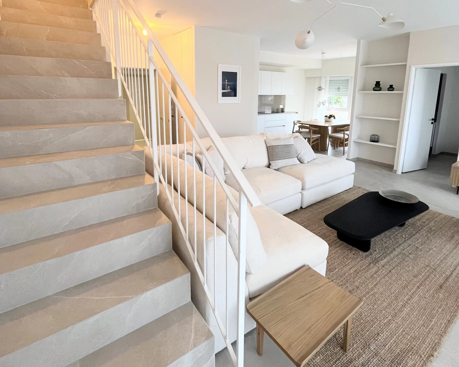 À l’étage, une seconde suite vient compléter l’appartement, apportant un véritable espace nuit indépendant, parfaitement adapté pour recevoir ou pour une configuration familiale.
