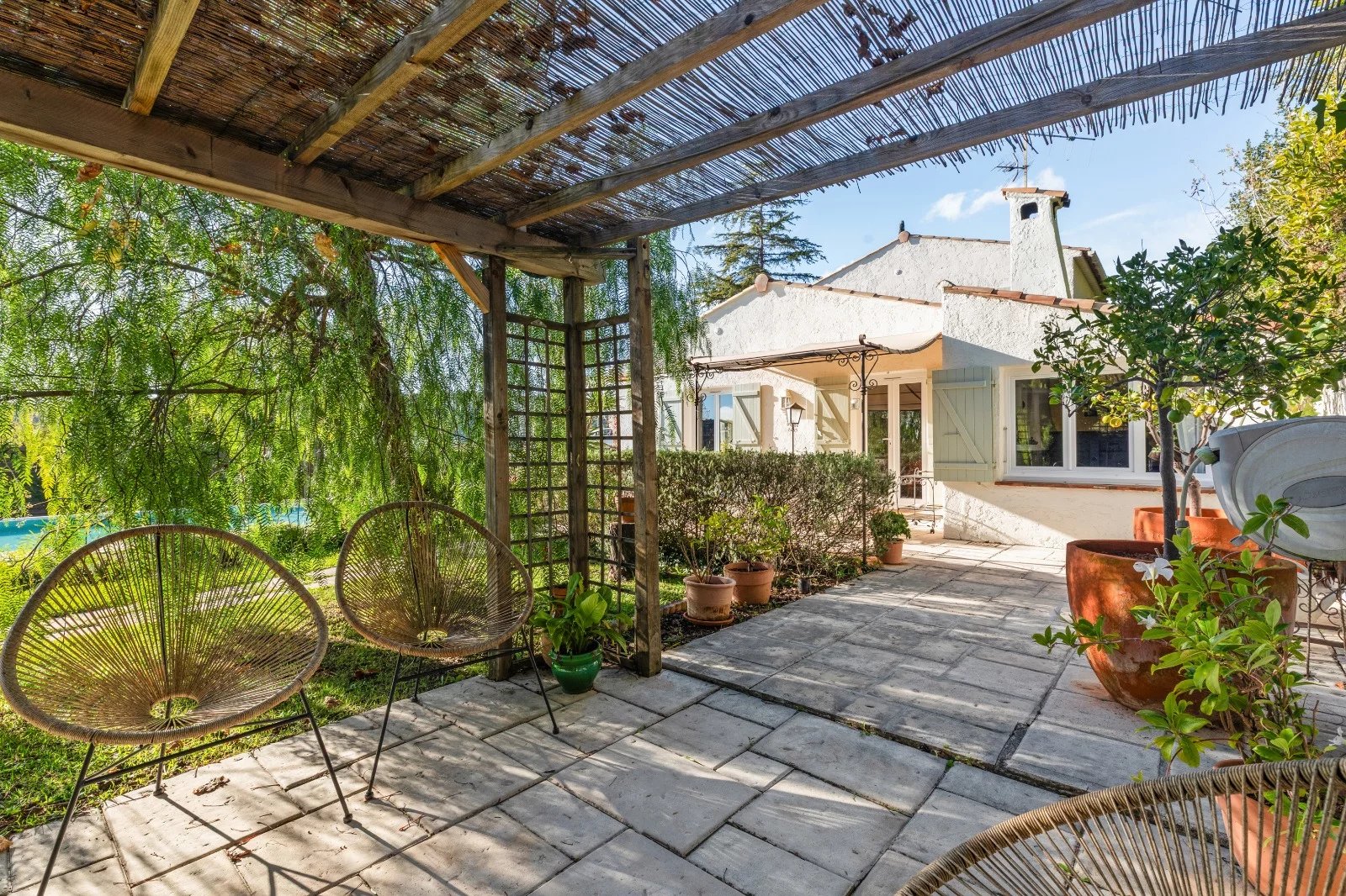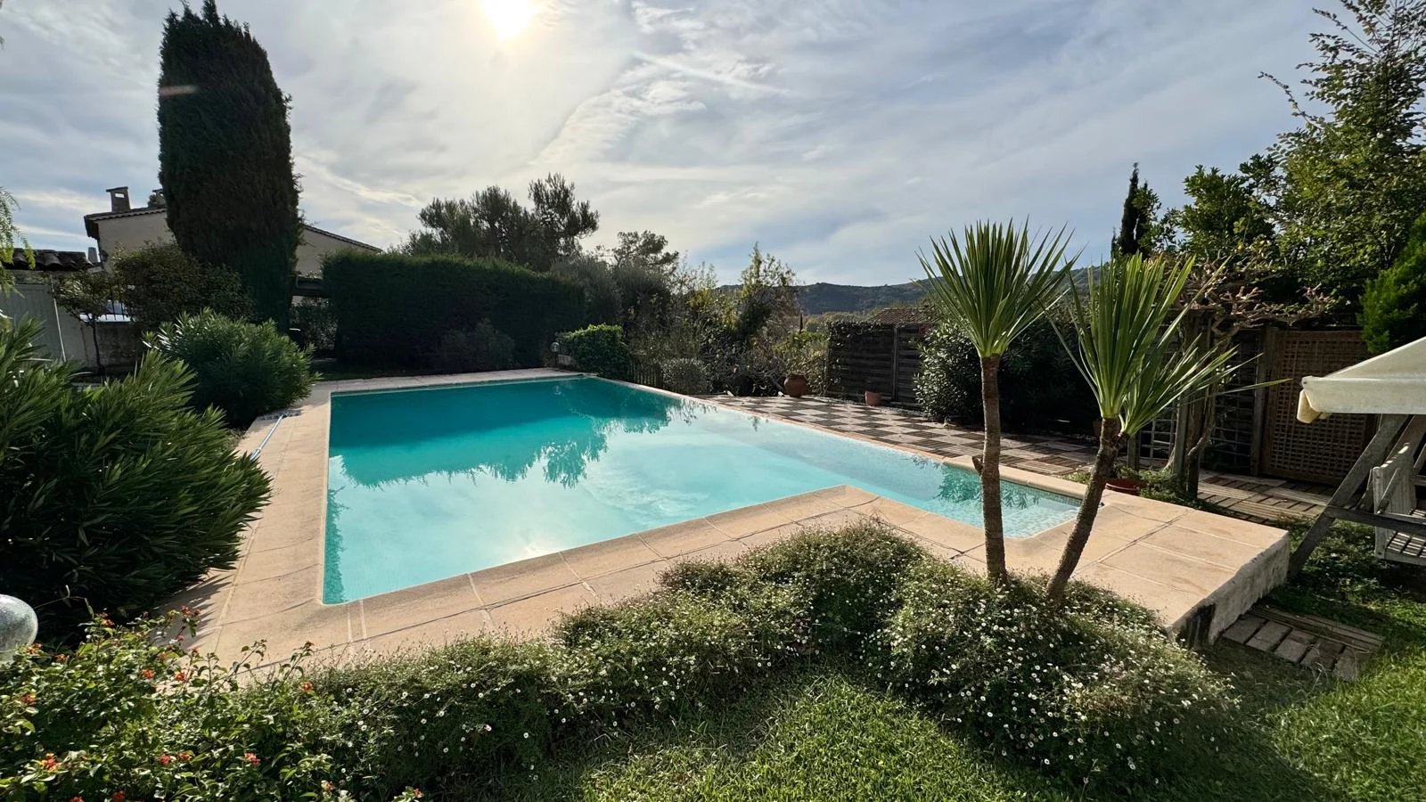 Le terrain de 1185 m², magnifiquement arboré d’essences méditerranéennes, accueille une grande piscine aux proportions généreuses, sans aucun vis-à-vis, ainsi que de spacieuses terrasses ombragées ou en plein soleil pour profiter pleinement de chaque moment de la journée.