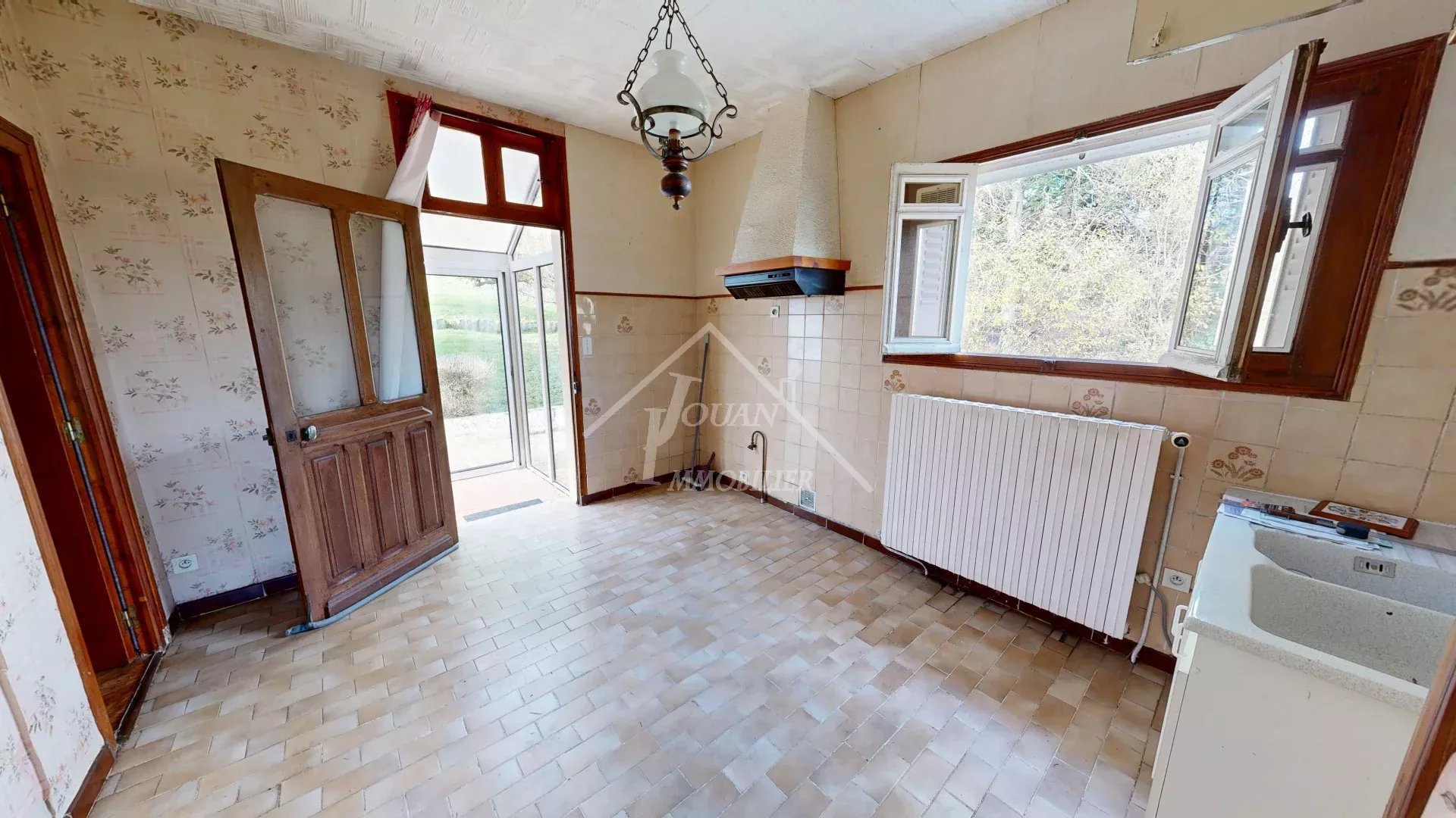 🍽 Une cuisine séparée, équipée d’un conduit parfait pour installer une cuisinière à bois