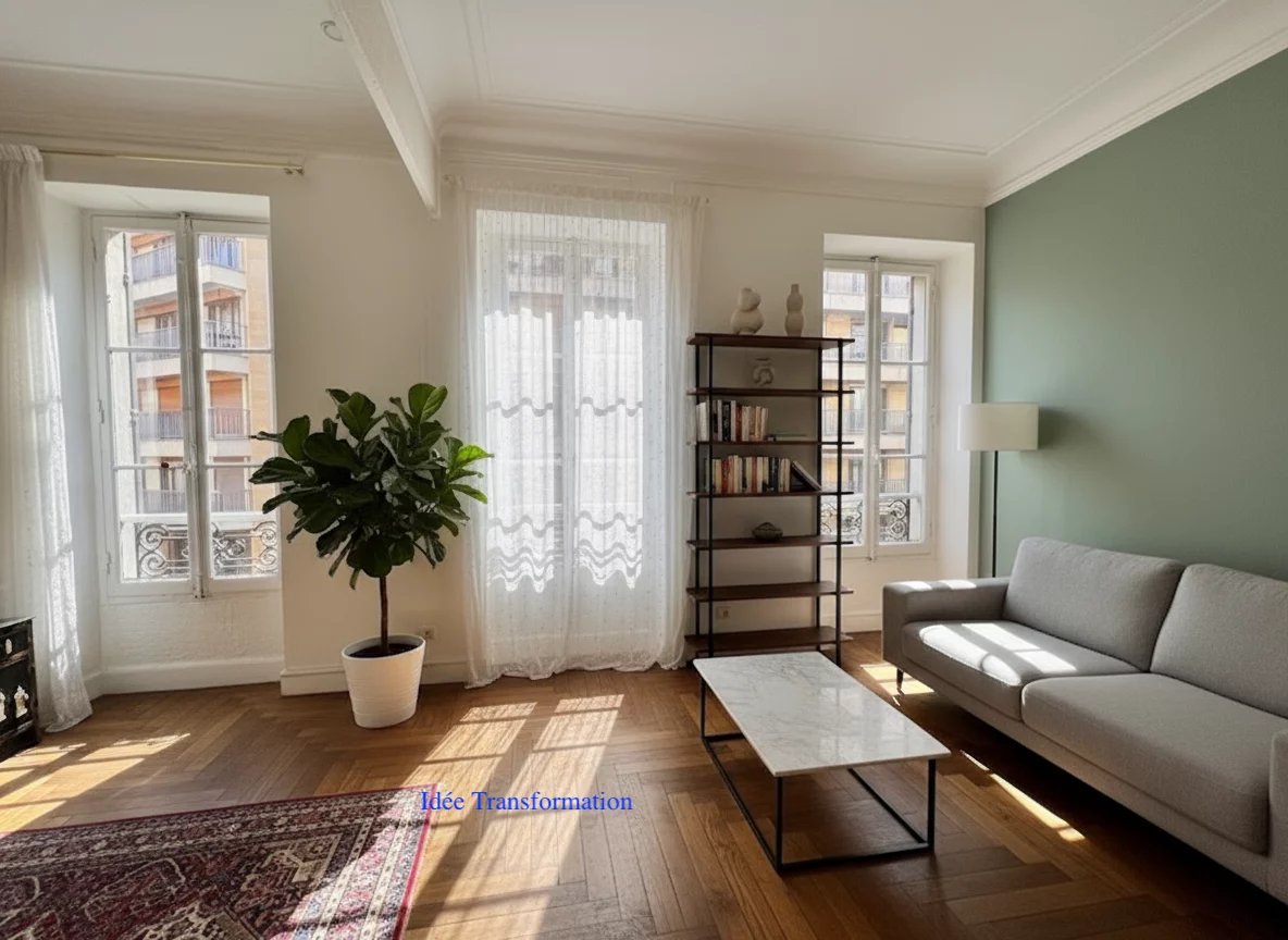 Actuellement configuré en grand T2, l'appartement peut néanmoins facilement devenir un T3; il offre d'ailleurs un grand potentiel de transformation (T2 ou T3, cuisine indépendante ou ouverte sur séjour).