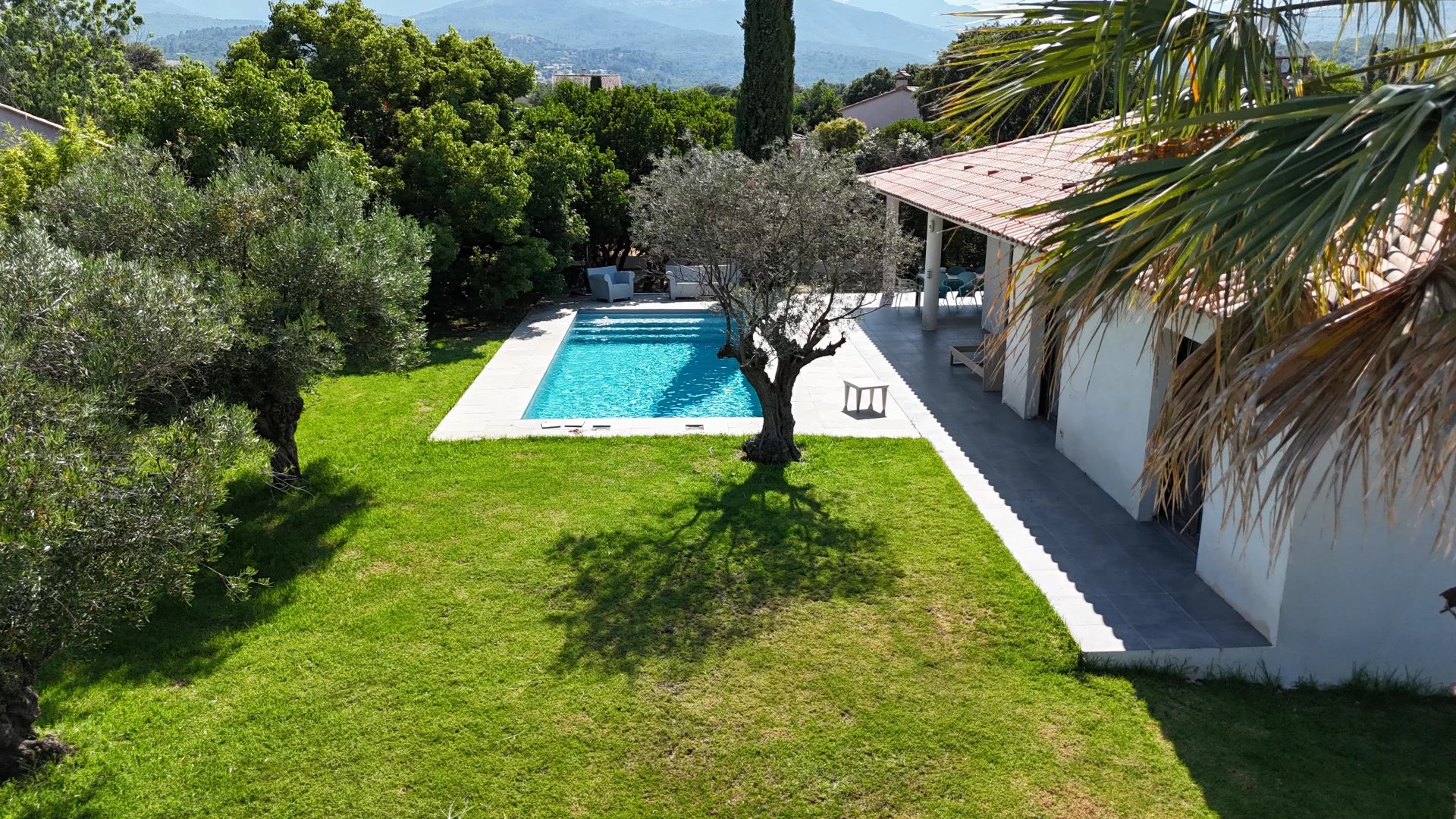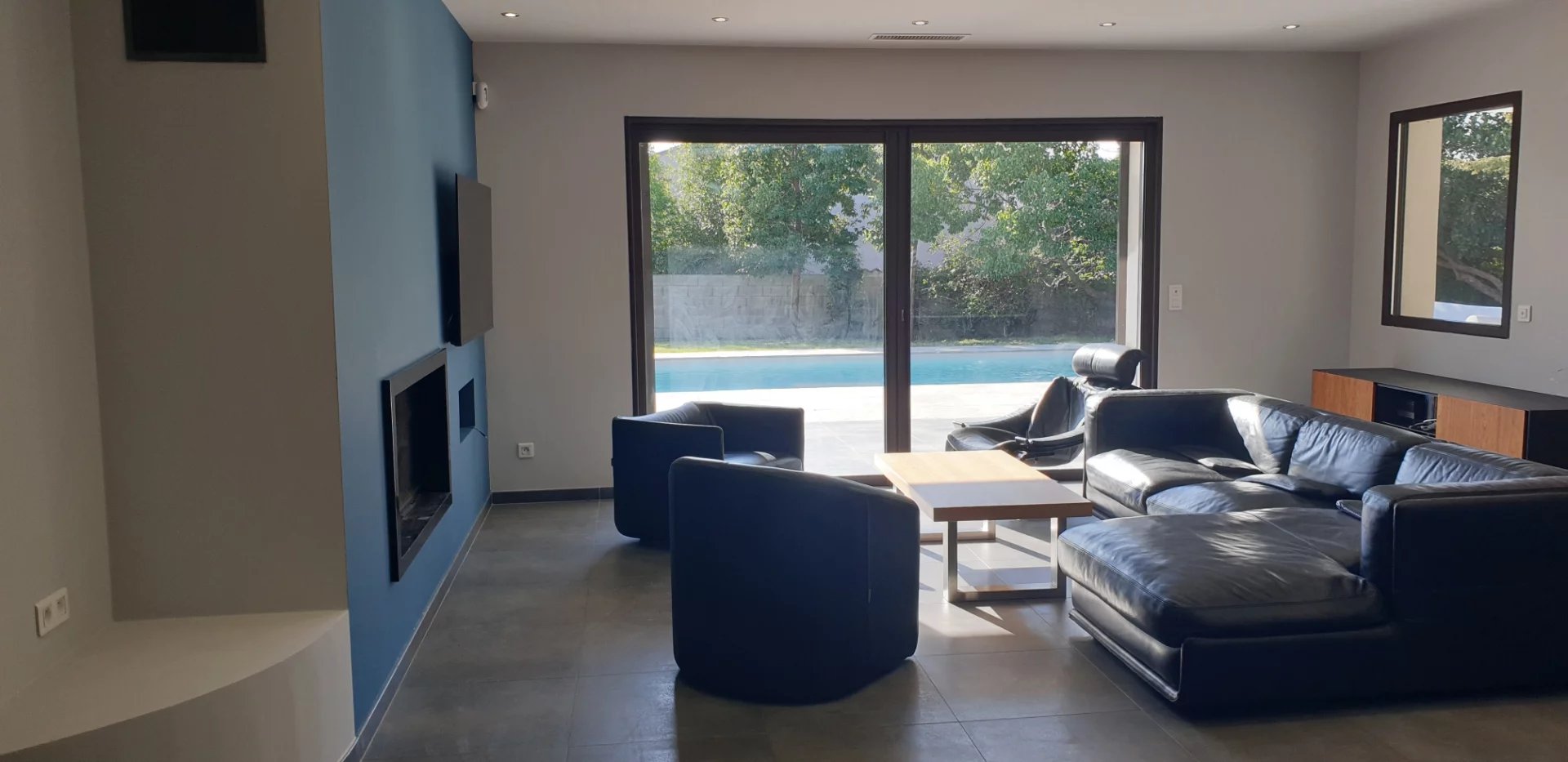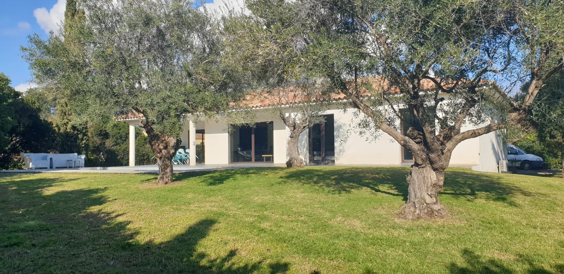 L'agence PANORAMER IMMOBILIER vous propose cette jolie villa de typeT5 dans un environnement calme et agréable avec piscine. Orientée plein sud, très lumineuse, elle est composée d'une cuisine entièrement équipée sur salle de séjour, salon et bureau, de quatres chambres dont deux chambres avec salle d'eau, d'une salle de bain avec douche et baignoires, d'une buanderie, de trois toilettes. Volets roulants électriques Terrasse couverte Chauffage au sol Climatisations réversibles Raccordement au tout à l'égout